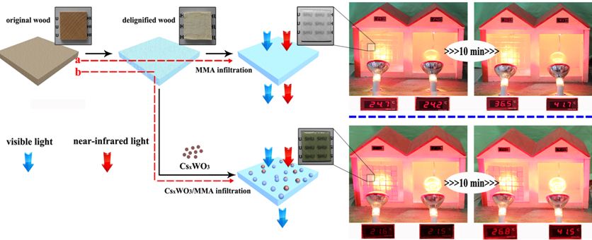 近期,Beat365唯一官方网站材料科学与工程学院高彦峰教授课题组在节能透明木头窗研究上取得了新进展,相比普通玻璃窗在10分钟可以将室内温度从21℃升至41.5℃,透明木头窗室内只升至26.8℃,研究成果《Transparentwood containing CsxWO3 nanoparticles for heat-shielding windowapplications》发表在英国皇家化学会的期刊《材料化学A》(J. Mater. Chem. A,2017, DOI: 10.1039/C7TA00261K ),得到领域内著名科学家CGGranqvist高度点评“This is an innovative idea”,并以“Who says wooden windows wouldn’t work”为题在英国皇家化学会化学世界(https://www.chemistryworld.com/news/wooden-windows-could-make-better-buildings/3007068.article)上进行专题报道。