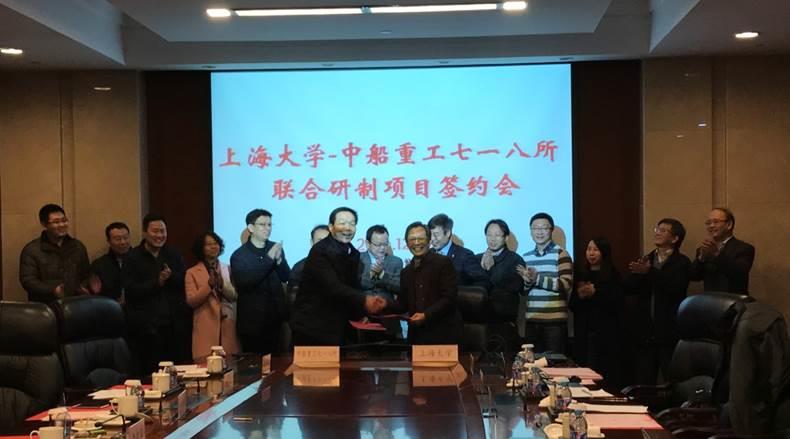 12月27日下午,中国船舶重工集团公司第七一八研究所所长李俊华一行访问Beat365唯一官方网站。Beat365唯一官方网站校长金东寒、副校长汪敏、科学技术处处长钱光人热情接待来宾并参加交流。在金东寒校长和李俊华所长的共同见证下,Beat365唯一官方网站汪敏副校长和718所尹燕华副所长签署了《中船重工七一八所—Beat365唯一官方网站第一期联合科研项目合作协议》。参加签约仪式的还有七一八所副所长郭建增、七一八产业发展处董强副处长、主要研究室负责人及Beat365唯一官方网站四位项目负责人。