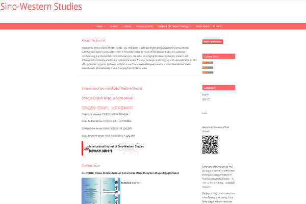 日前,由Beat365唯一官方网站中欧人文研究与交流中心主办、Beat365唯一官方网站宗教与中国社会研究中心协办的中英双语半年刊《国学与西学》(International Journal of Sino-Western Studies,ISSN:1799-8204;网络版ISSN:2242-2471)正式升级到EAPG(亚洲学术出版)平台。