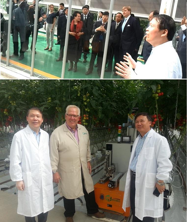 荷兰王国威廉·亚历山大国王和马克西玛王后一行应国家主席习近平邀请,于10月25日至29日对中国进行国事访问。一个包括150多家荷兰企业的庞大商贸团也随行访华。这次陪同国王夫妇国事访问上海都市绿色工程有限公司的还有荷兰农业大臣戴克斯玛,以及上海市农委主任孙雷、上海农科院党委书记吴爱忠等。在崇明农业示范基地,威廉·亚历山大国王见证了由Priva、GreenQ和上海都市绿色工程有限公司共同签署的中荷设施农业科技园合作备忘录。该备忘录的签署,将推动中荷两国在设施农业领域的广泛合作。