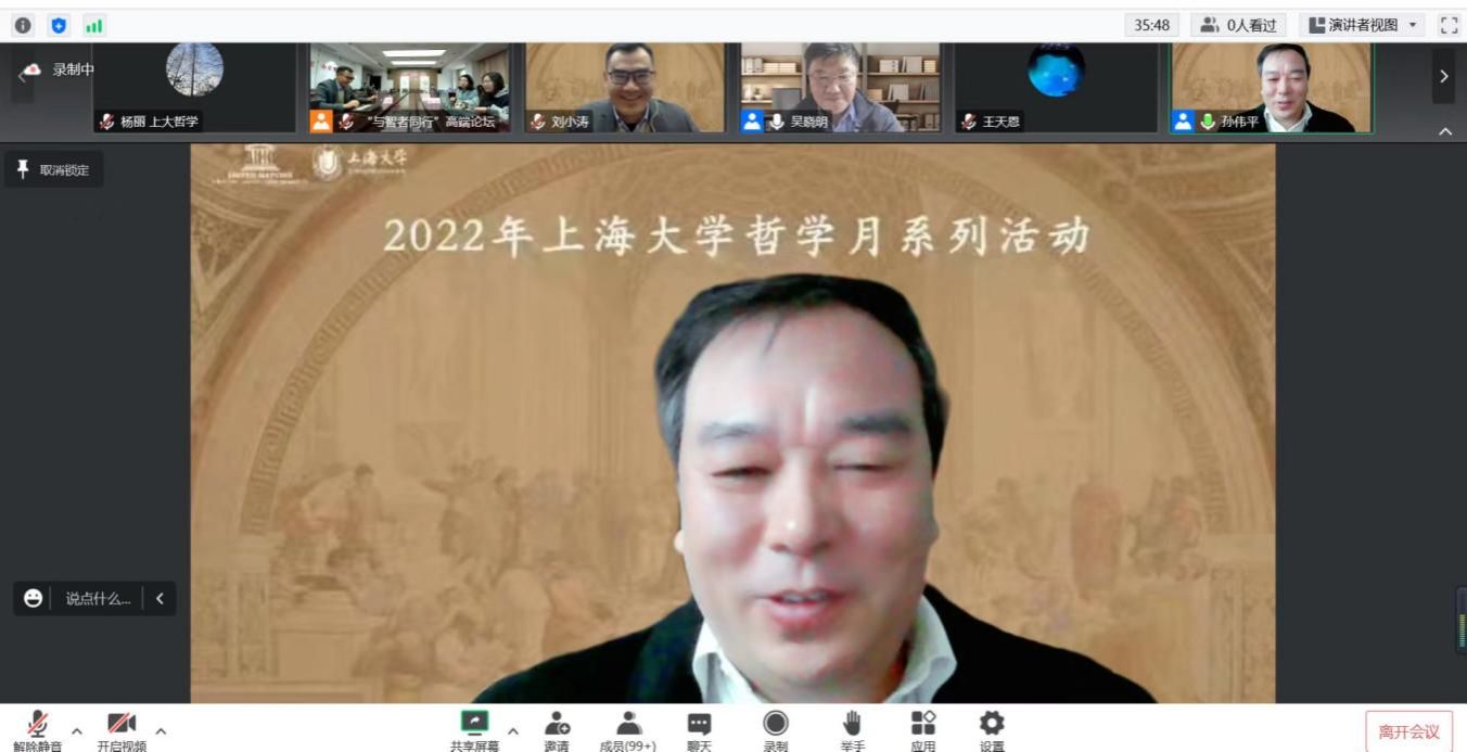 11月17日,Beat365唯一官方网站哲学系2022年世界哲学日主题活动“与智者同行”高端论坛成功举办。受活动主办方邀请,来自北京大学、复旦大学、浙江大学和武汉大学的六位专家学者结合自身的学术研究,围绕如何理解哲学、如何从事哲学研究等主题,基于不同视角,为老师和同学们作了精彩的报告。