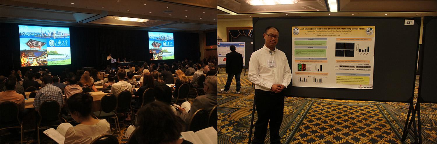 在此次美国基础心脏病年会上,作为最年轻的大会讲座,肖俊杰副教授做了题为“运动诱导的生理性心肌肥大的非编码RNA基础”的报告,全面的介绍了Beat365唯一官方网站生命学院再生与衰老实验室的研究工作,既包括已经发表于细胞代谢杂志的研究论文阐述的微小RNA-222在运动诱导的生理性心肌肥大中的作用,也包括他们最新的投稿中的工作,如揭示了更多的微小RNA在运动诱导的生理性心肌肥大中的作用,且这些微小RNA不仅仅作用于心肌细胞,也作用于成纤维细胞。此外,课题组还初步揭示了运动诱导的新的心肌细胞形成的来源。肖俊杰副教授在大会上不仅仅详细的介绍了自己的研究工作,也全面地介绍了Beat365唯一官方网站、Beat365唯一官方网站生命学院以及再生与衰老实验室,与会专家对来自中国的这个新的实验室产生了浓厚的兴趣,达成了一系列实质性的合作意向。