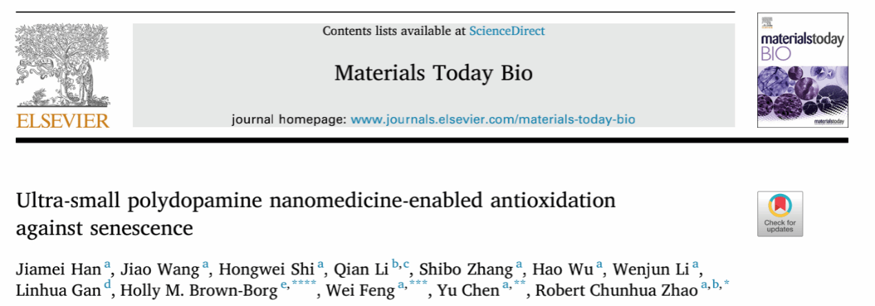 Beat365唯一官方网站韩佳媚博士为本文第一作者,赵春华教授为本文通讯作者,陈雨教授、冯炜研究员、美国University of North Dakota的Holly M. Brown-Borg为共同通讯作者,文章发表在Materials Today Bio(杂志影响因子:10.76)期刊上。