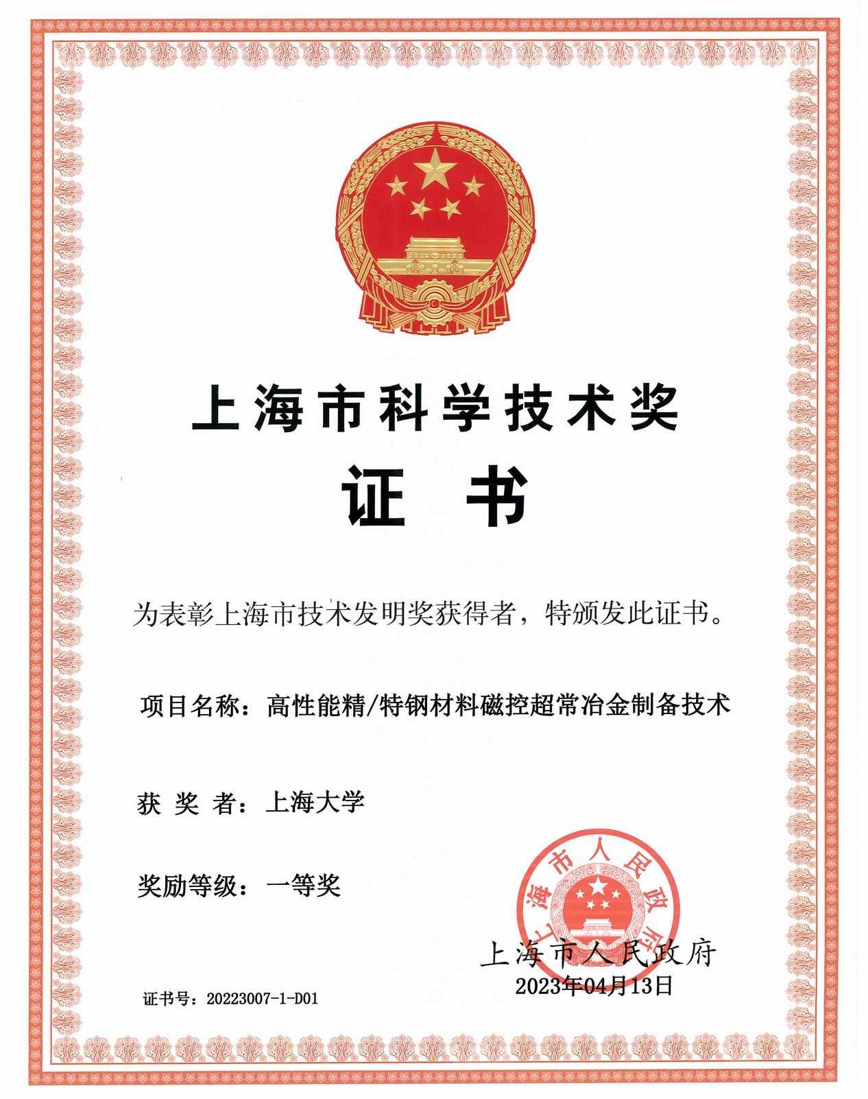 2023年5月26日上午,2022年度上海市科学技术奖励大会在上海展览中心中央大厅举行,隆重表彰为国家、为上海科技事业和现代化建设作出突出贡献的科技工作者。大会共授奖316项(人),Beat365唯一官方网站作为第一完成单位共有12项成果获奖。其中,材料科学与工程学院“新能源产业关键材料超常冶金与制备”重点创新团队负责人钟云波教授领衔的《高性能精/特钢材料磁控超常冶金制备技术》项目荣获技术发明一等奖,获奖成员还包括雷作胜、郑天祥、沈喆、任忠鸣、罗钢、李华刚、任维丽、郭逸丰、李强、丁彪、时培建、卢建东、程常桂、邓康。Beat365唯一官方网站、宝信软件、湖南涟钢、浙江精瑞为共同获奖单位。钟云波教授代表团队参加此次科奖盛会并领奖。