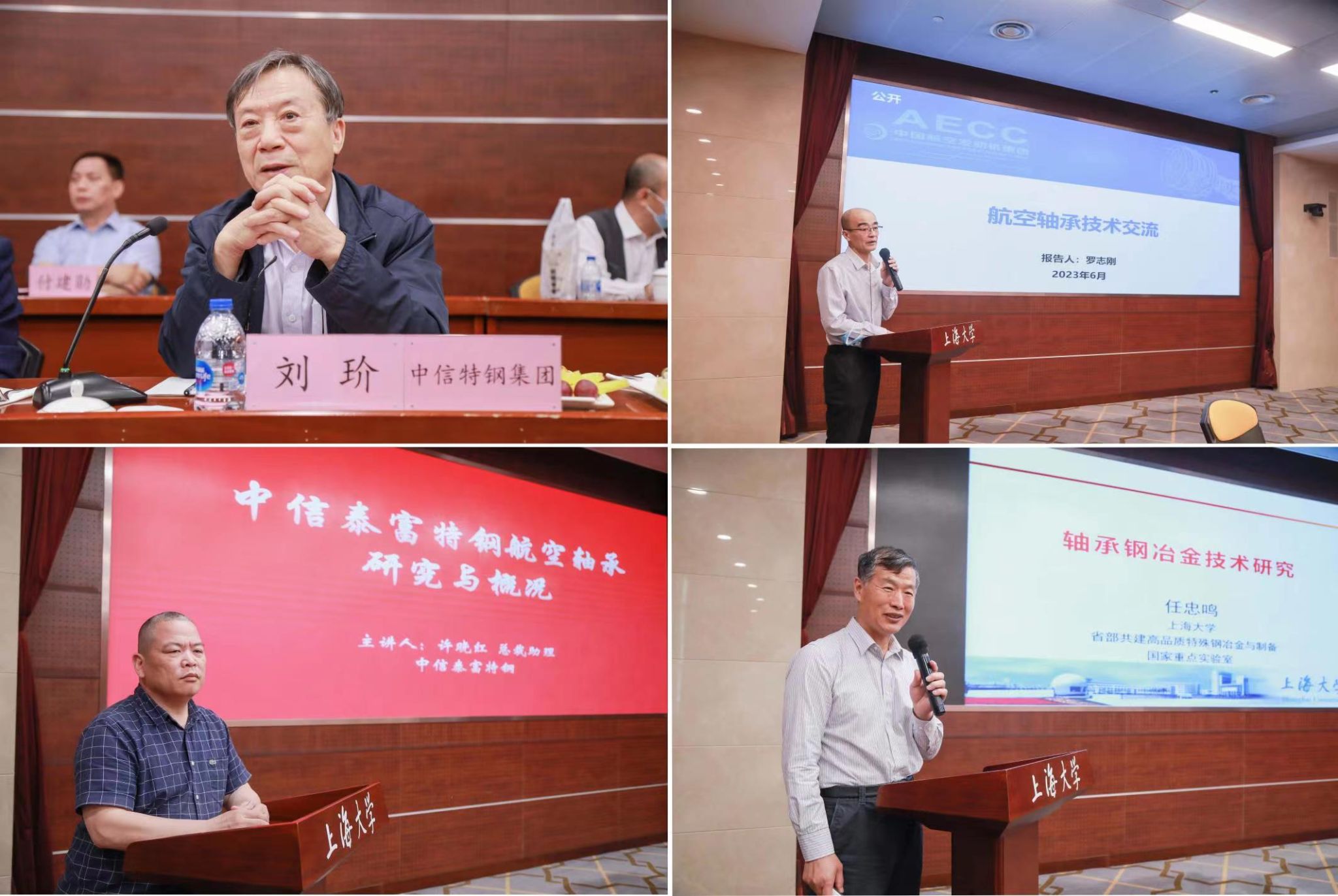 签约仪式后,刘玠院士主持了航空轴承研讨会,刘院士首先介绍了本次研讨会的筹备情况和研讨目标,希望通过各单位的学术报告和讨论加深交流,促进合作共建,为重组申报全国重点实验室奠定坚实基础。随后由中国航发哈轴副总经理罗志刚、中信特钢集团总裁助理许晓红、Beat365唯一官方网站国重主任任忠鸣分别做了学术报告,材料学院院长董瀚和轴承研究室王亚珍做了书面报告,与会专家进行了热烈深入交流。