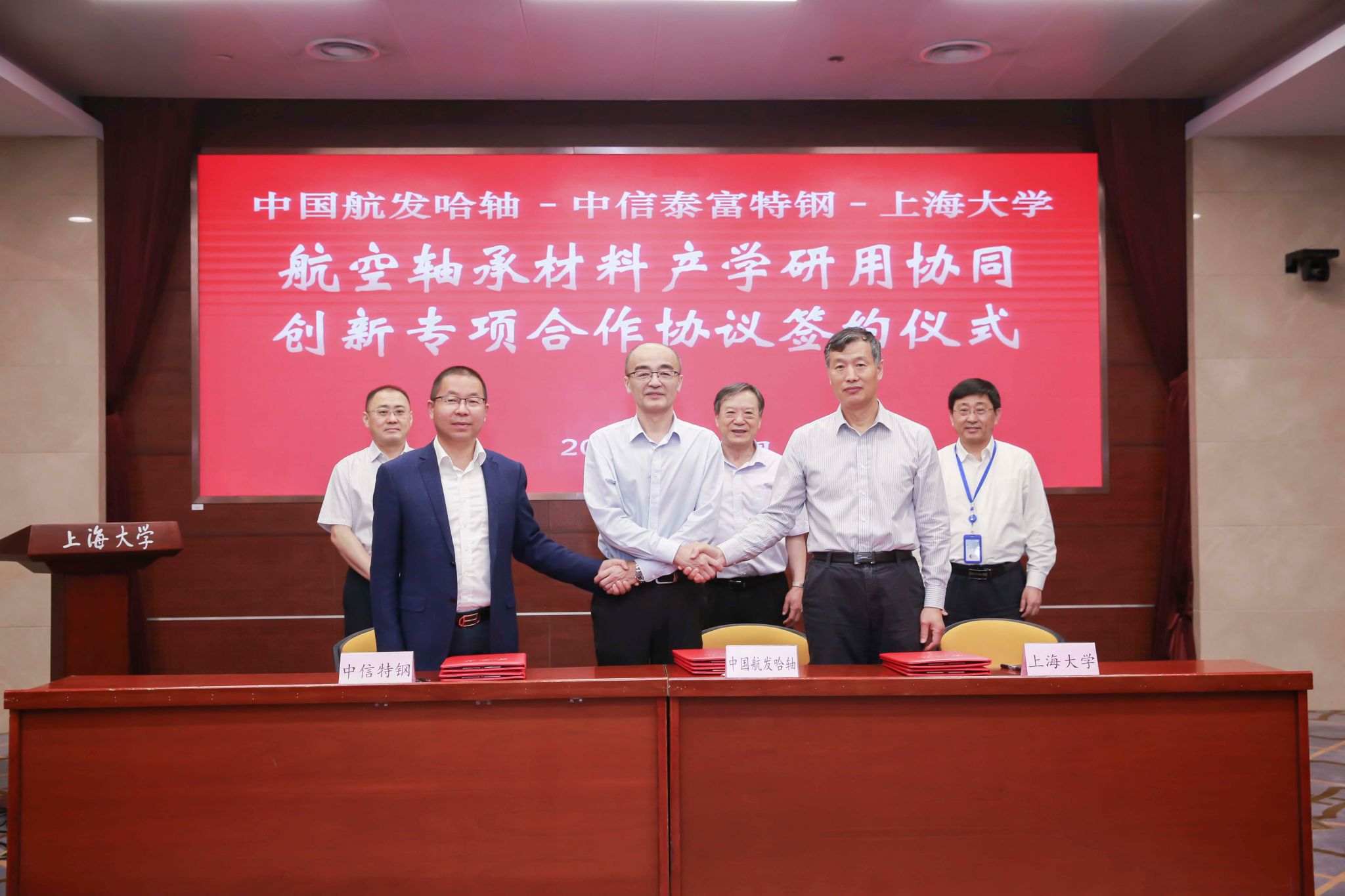 6月2日上午,中国航发集团哈轴公司-中信特钢集团-Beat365唯一官方网站“航空轴承研讨会暨合作协议签约仪式”在Beat365唯一官方网站乐乎新楼思源厅举行。中信特钢集团/Beat365唯一官方网站刘玠院士,中国航发集团总部科技管理部部长李园春、处长王英杰,中国航发哈尔滨轴承有限公司副总经理、总工程师罗志刚,总冶金师安敏、研发中心室主任王文雪,中信特钢集团总裁李国忠、首席谢蔚、总裁助理许晓红、科技部副部长李锋、研发室主任周群,Beat365唯一官方网站党委副书记欧阳华、科研管理部副部长李辉、科研管理部基地与成果处处长邵玮、材料科学与工程学院副院长黄健、省部共建高品质特殊钢冶金与制备国家重点实验室主任任忠鸣,副主任尤静林、杨健、邹星礼等各位专家出席签约仪式。首先进行了签约活动,在中信特钢集团/Beat365唯一官方网站刘玠院士、中国航发集团总部科技管理部部长李园春、Beat365唯一官方网站党委副书记欧阳华的共同见证下, 中国航发集团哈轴公司副总经理、总工程师罗志刚,中信特钢集团总裁李国忠和Beat365唯一官方网站国家重点实验室主任任忠鸣共同签署了合作协议。