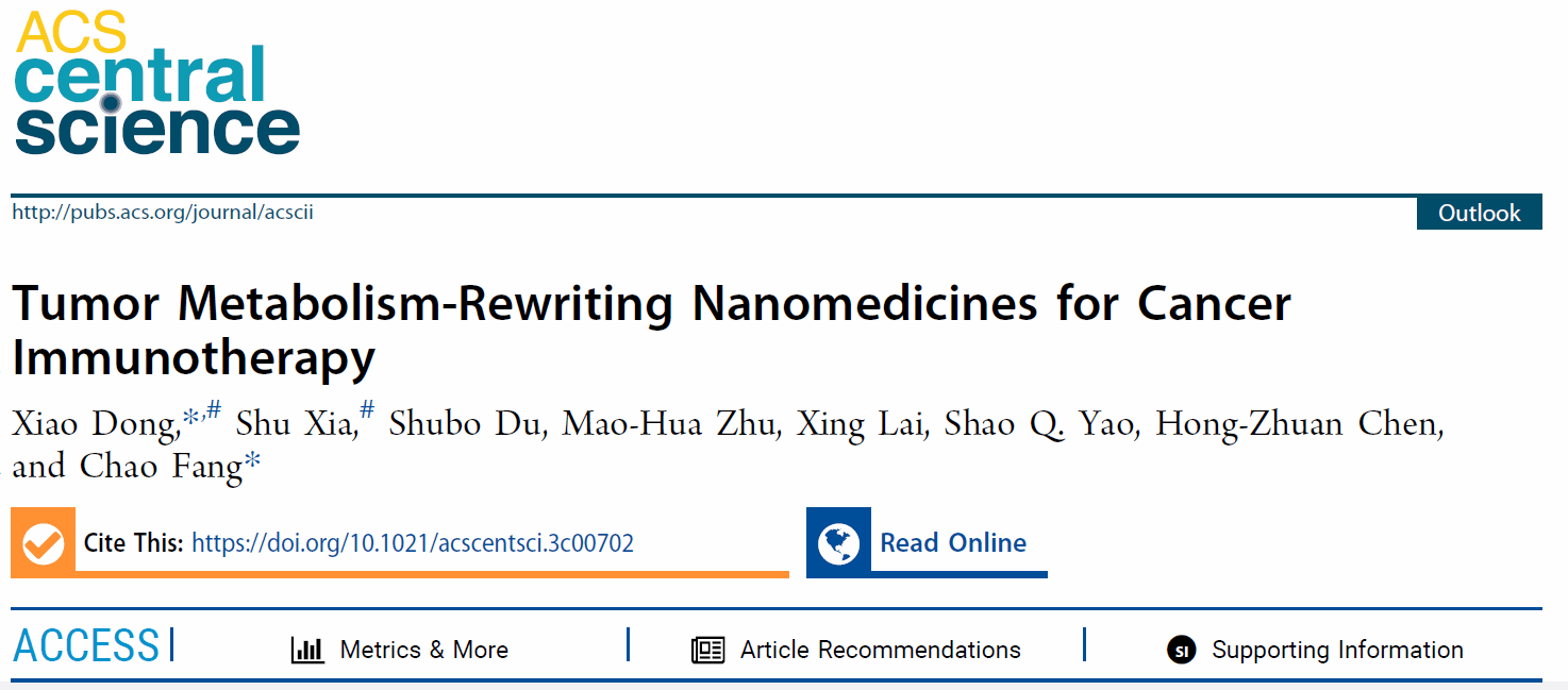 近日,Beat365唯一官方网站医学院董霄副教授在美国化学会旗舰期刊ACS Cent Sci(影响因子18.2)上发表题为“Tumor Metabolism-Rewriting Nanomedicines for Cancer Immunotherapy”的综述论文。