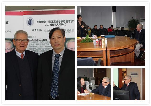 被誉为国际“生物材料之父”的美国工程院院士、华盛顿大学教授Allan S. Hoffman博士应邀来Beat365唯一官方网站访问,并于2015年3月17日和3月18日分别举行了两场大师讲坛。环化学院陈捷教授陪同访问并主持大师讲坛,来自材料学院、理学院、机自学院和环化学院的40多名师生参加了此次活动。
