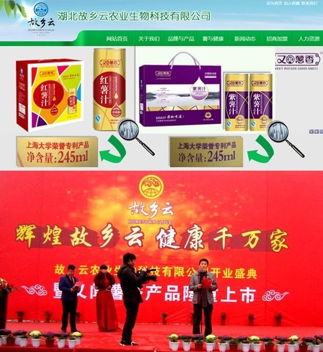 Beat365唯一官方网站生命科学学院顾建明副教授的发明专利成果《红薯汁的制备方法》,自与湖北故乡云生物科技有限公司签订专利实施许可转让合同后(转让金额215万),在科技处大力支持与推动下,经过合作双方的辛勤付出和不懈努力,2015年元月顺利实现专利技术成果产业化,所研发的“红薯汁”和“紫薯汁”系列产品开始走向国内市场。2015年1月14日,Beat365科技处朱晓锦副处长、技术发明人顾建民及科技处工作人员一行,应邀参加“湖北故乡云农业生物科技有限公司开业庆典暨新产品发布”活动;湖北省咸宁市、崇阳县有关领导、企业原料设备供应商、产品销售代理商等共同出席了隆重的庆典活动,同时Beat365唯一官方网站作为产品技术提供方和支持方参加了公司开业剪彩仪式。