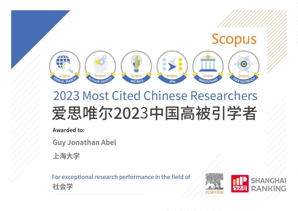 2024年3月27日,爱思唯尔(Elsevier) 正式发布2023“中国高被引学者” (Highly Cited Chinese Researchers)榜单。2023年中国高被引学者上榜共计5801人, 来自496所高校、企业及科研机构,覆盖了10个教育部学科领域中的84门一级学科。社会学院计迎春教授、Guy Abel教授入选社会学领域的高被引学者榜单。