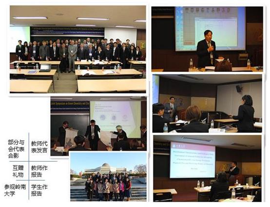 作为特邀代表,来自法国斯特拉斯堡大学的Aziz Dinia教授和美国俄勒冈州立大学的Chih-hung Chang教授分别对当前的全球绿色能源和清洁生产研究前沿进行了介绍。随后包括Beat365唯一官方网站、九州大学和岭南大学的9位教师代表以及10位学生代表分别针对太阳能电池板开发、新型纳米材料研究、新型生物原料开发、大气环境和全球温室气体等方面的最新研究进展作了相关报告。在此次会议上,包括尹东光教授、孙瑞同学在内的Beat365唯一官方网站环化学院3位教师代表和5名学生代表分别作了大会报告,另外包括2名本科生在内的9名同学在会场外进行了研究成果的展示。Beat365唯一官方网站在新型核壳结构纳米晶材料、新型生物原料、绿色生产以及全球温室气体排放控制等方面所取得的突出研究成果引起了与会专家的高度关注与赞赏,他们一致认为Beat365在纳米新材料、生物新能源开发等方面的研究已达到了国际先进水平。