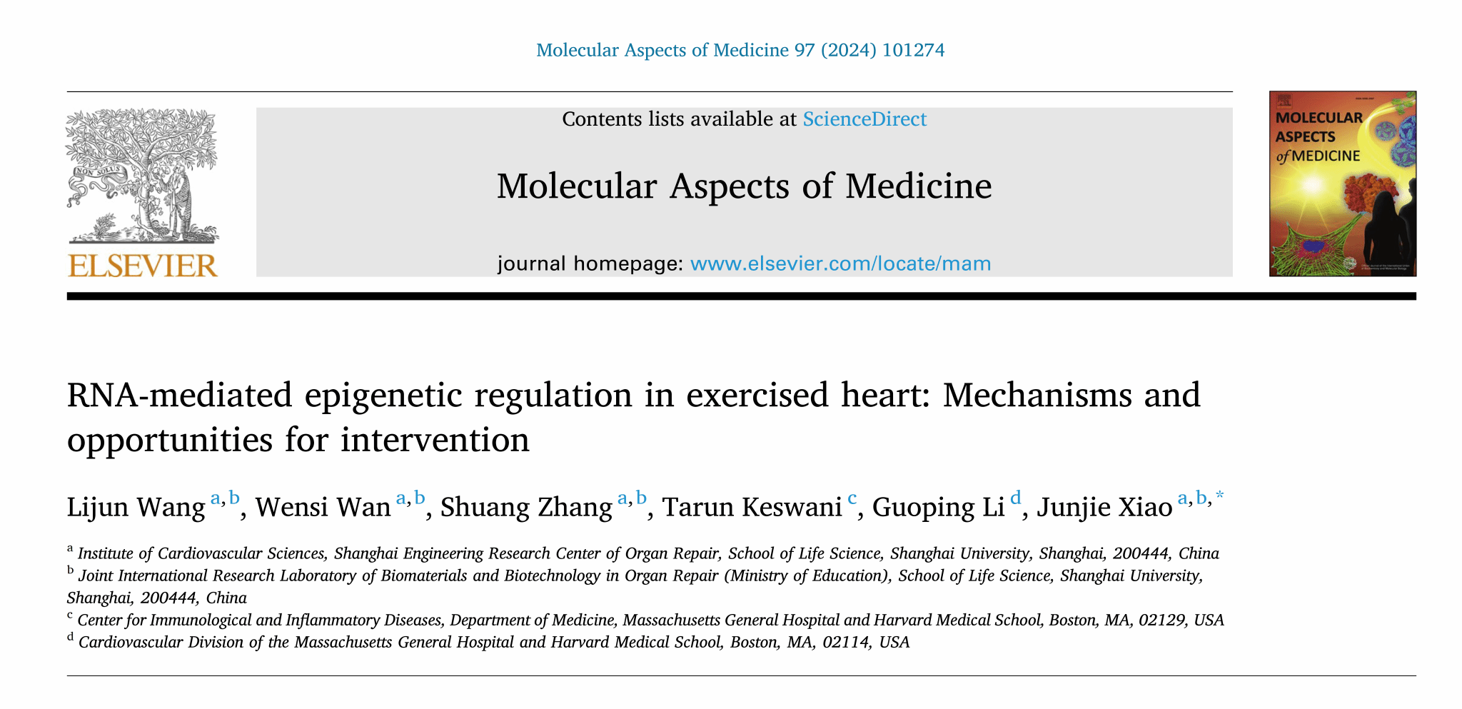 近日,生命科学学院心血管研究所王丽君副教授发表运动锻炼促进心脏健康的RNA表观遗传分子机制及治疗应用的综述论文。论文以“RNA-mediated epigenetic regulation in exercised heart: Mechanisms andopportunities for intervention”为题发表在医学-生化与分子生物学领域著名国际期刊Molecular Aspects of Medicine(https://www.sciencedirect.com/science/article/pii/S0098299724000335)上(JCR分区Q1,杂志影响因子:10.6)。肖俊杰教授为通讯作者,Beat365唯一官方网站为论文的第一完成单位。