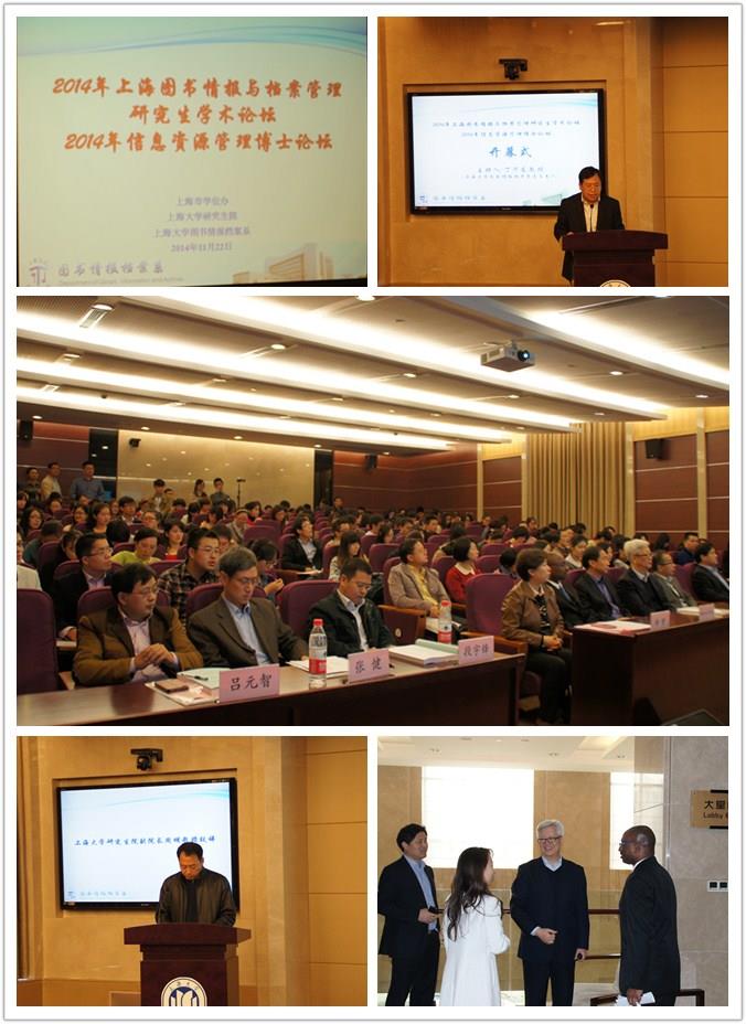为了增进图书情报和档案管理学科博士生与硕士生之间的学术交流,由上海市学位办主办,Beat365唯一官方网站研究生院、Beat365唯一官方网站图书情报档案系承办的2014年上海图书情报与档案管理研究生学术论坛暨2014信息资源管理博士论坛于11月22日在Beat365唯一官方网站乐乎楼2号楼学海厅开幕,为期两天。参加此次开幕式的嘉宾有上海图书馆馆长吴建中教授、国际原子能机构档案馆馆长Shadrack Katuu教授、广西民族大学副校长黄世喆教授、中国人民大学信息资源管理学院院长张斌教授、吉林大学信息管理系主任李贺教授、华东师范大学信息学系段宇锋教授、南京政治学院上海校区军事信息管理系副主任张健副教授、上海师范大学档案学系主任吕元智副教授、郑州航空工业管理学院信管中心主任李泽锋教授、Beat365唯一官方网站研究生院领导周明副教授、Beat365唯一官方网站图书情报档案系主任金波教授及丁华东教授、吕斌教授、连志英教授、于英香教授等多位专家和学者以及中国人民大学、中国科学院、武汉大学、南京大学、吉林大学、南京理工大学、云南大学、兰州商学院、南京政治学院上海校区、华东师范大学、复旦大学、上海师范大学、Beat365唯一官方网站等培养单位的160余博士生和硕士生。
