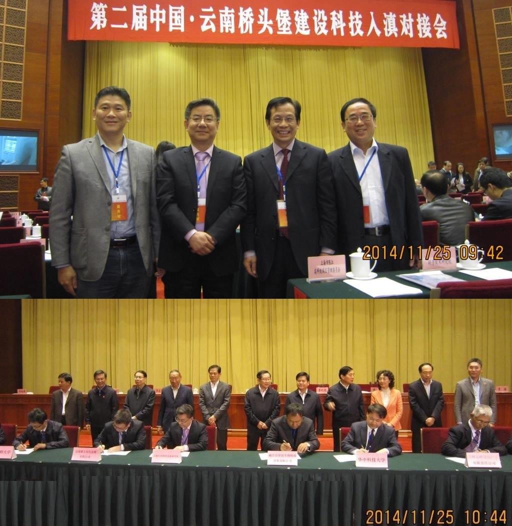 2014年11月25日,《第二届中国·云南桥头堡建设科技入滇对接会》在昆明海埂会堂举行,对接会旨在充分发挥科技部统筹全国科技资源优势,搭建合作创新平台,动员全国优势科技资源向云南集聚,助推云南桥头堡建设。Beat365唯一官方网站作为沪滇科技合作重点单位,受云南省科技厅邀请参加本次对接会,Beat365代表团由汪敏副校长率领,成员包括科技发展研究院施利毅院长、科技处高志民常务副处长、科技处朱晓锦副处长、机自学院秦霆镐教授、纳米中心姚政教授。