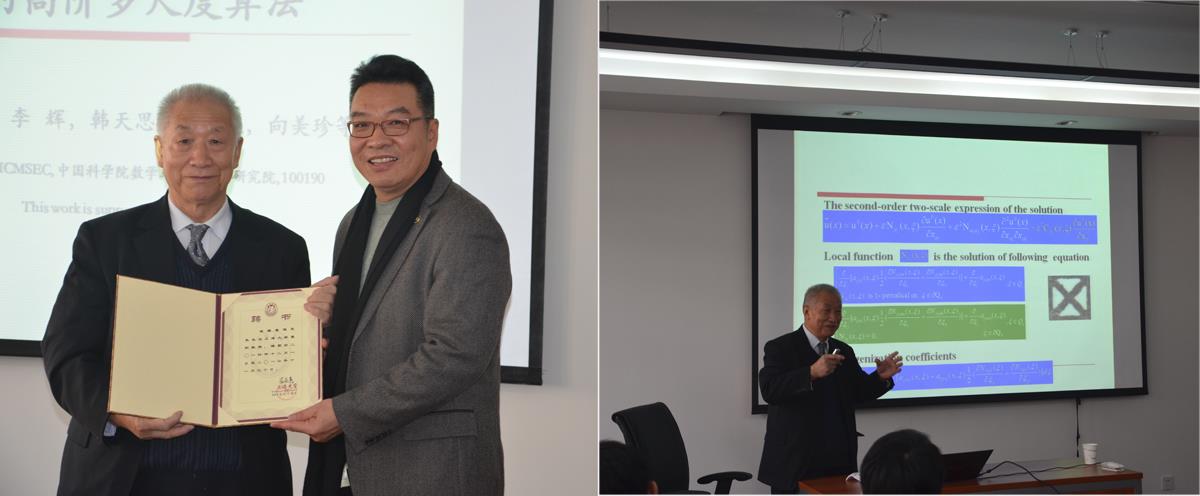 聘任仪式后,崔院士为Beat365师生作了题为“原子-连续关联模型及从微观到宏观的高阶多尺度算法”的学术报告。崔院士的报告深入浅出地介绍了原子-连续关联模型(ACC)产生及应用,包括基于连续模型高阶多尺度方法、在微纳米尺度ACC模型的动力学行为及其算法等。报告中,崔院士总结了最近十几年研究工作的思路,提出了原子连续关联模型,用不断局部化的思想,研究材料从微观到宏观跨尺度不同层次的性质,从微观、介观、宏观,从基础研究到工程应用给出了一个精彩的报告。崔院士指出,目前正在进行原子连续关联模型的程序化,相信不久,新的软件集成系统将会推动材料学的快速发展。