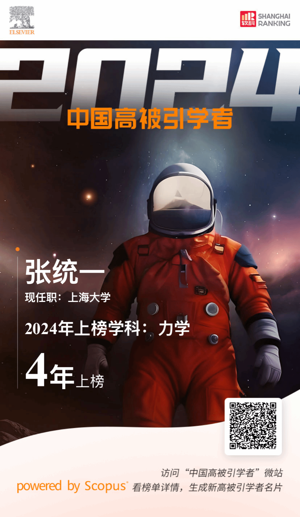 2025年3月25日,爱思唯尔(Elsevier) 正式发布2024“中国高被引学者” (Highly Cited Chinese Researchers) 榜单。