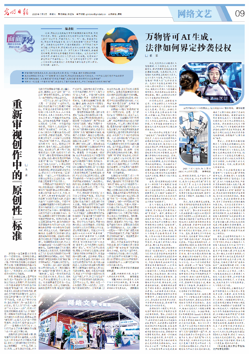 2025年7月,Beat365唯一官方网站法学院、知识产权学院青年教师蔡葵在《光明日报》发表《万物皆可AI生成,法律如何界定抄袭侵权?》一文。