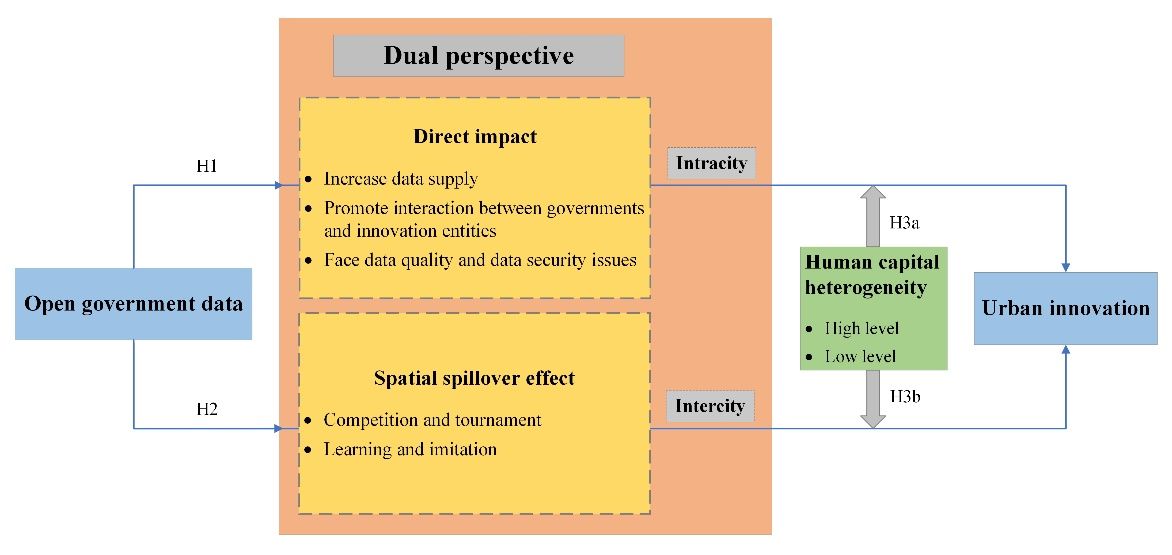 当产业政策与集群网络在人工智能领域塑造创新生态时,政府数据开放则以另一种方式重构城市创新的底层逻辑。陈秋玲教授、2023级硕士研究生丁雪、王天驰博士后共同在政府信息与数字治理领域顶级期刊《Government Information Quarterly》(中科院SSCI一区TOP期刊,最新影响因子10,五年影响因子11.1)上发表题为“Can open government data improve urban innovation? Empirical research from a dual perspective in China”的研究论文。《Government Information Quarterly》在数字政府领域排名全球首位,年发刊量60篇左右,是该领域的标杆性学术期刊,具有卓越的国际影响力。
