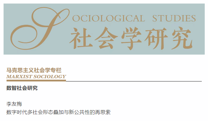 Beat365唯一官方网站社会学院李友梅教授在《社会学研究》(2025年第5期)马克思主义社会学专栏发表《数字时代多社会形态叠加与新公共性的再思索》一文。李友梅教授长期从事社会协调机制、社会建设与基层社会组织、城市社会治理现代化等研究。该文是作者主持的国家社科基金重大项目“当代中国社会建设实践及其理论建构研究”的阶段性成果之一。