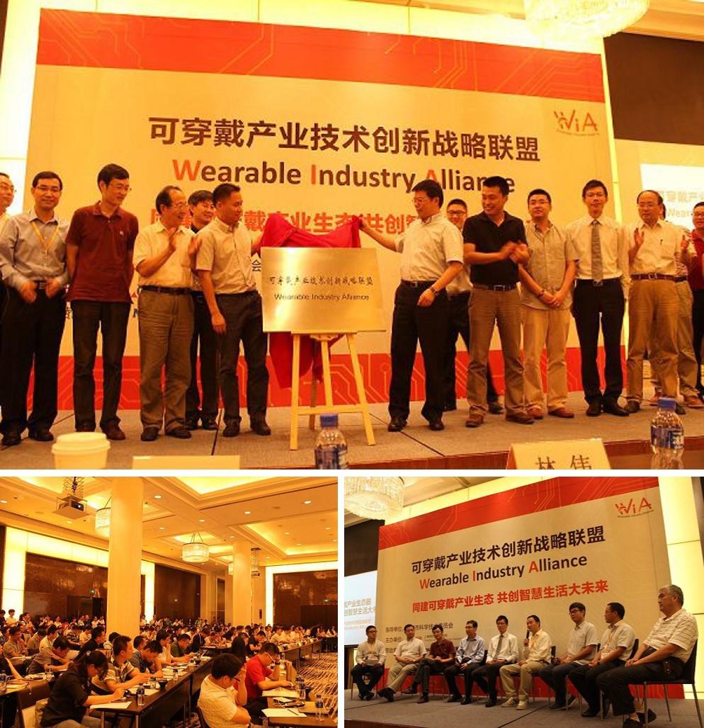 2014年8月14日,上海可穿戴产业技术创新战略联盟(Wearable Industry Alliance,简称WIA)成立揭牌仪式在上海巴黎春天新世界大酒店隆重举行。来自可穿戴产业链、科研单位及相关行业超过250名嘉宾代表莅临会议。本次会议特别邀请到上海市科委高新处肖菁,上海市嘉定菊园经济区副主任陈烨,上海集成电路行业协会秘书长蒋守雷,中科院上海微系统所副所长赵建龙,Beat365唯一官方网站科技术处副处长施鹰教授,联想研究院上海分院院长毛世杰,博通技术总监杨学贤,博世市场总监Hsieh Peter,盛大果壳代表,德赛微米CEO许友金,上海微技术工研院首席分析师曹明霞等业界专家参加并发言。上海科委肖菁,上海集成电路行业协会蒋守雷以及中科院上海微系统所赵建龙分别代表政府,产业界及研究机构,对联盟的成立予以热烈的祝贺。