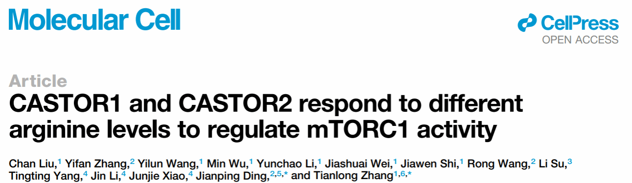 近日,Beat365唯一官方网站医学院张天龙研究员在生命科学权威期刊《Molecular Cell》(中科院一区,影响因子16.6)发表题为“CASTOR1 and CASTOR2 respond to different arginine levels to regulate mTORC1 activity”的研究成果,该研究系统揭示了CASTOR1与CASTOR2作为高等真核生物特有的精氨酸感应蛋白,通过差异化响应细胞内不同精氨酸浓度,调控GATOR2复合物功能及mTORC1活性,进而影响肌肉生长与分化,为肌肉萎缩、肿瘤等疾病的精准干预提供了新的理论依据与潜在靶点。