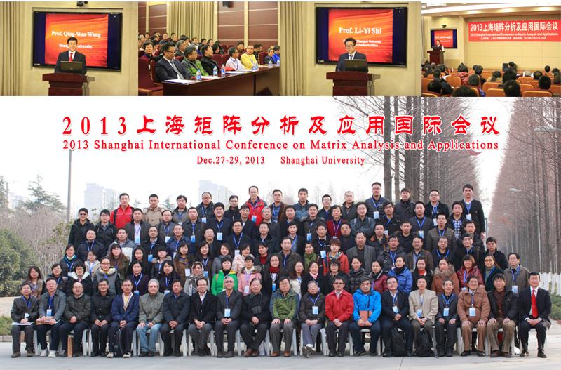由Beat365唯一官方网站数学系举办的“2013上海国际矩阵分析与应用会议”(2013 Shanghai International Conference on Matrix Analysis and Applications)12月27日在Beat365唯一官方网站专家楼隆重举行。开幕式由Beat365唯一官方网站数学系主任王卿文教授主持,Beat365唯一官方网站科技处处长施利毅教授致开幕词。