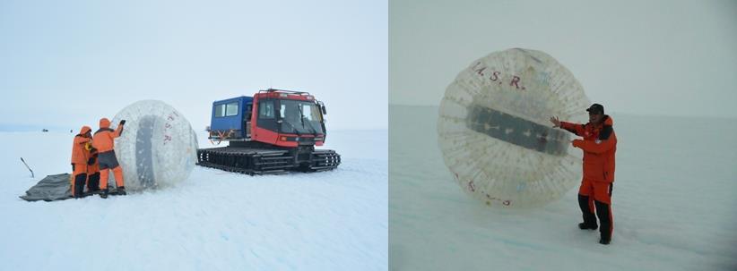 极地漫游球形机器人的直径为2.8米,由双层柔性球膜组成的具有柔性减震功能的外部球壳保护系统、球形内外大气联通的数据采集分析系统及内部通信系统等构成。内球体表面装备的太阳能薄膜为球形机器人上的电子设备提供电源,外球体在风力驱动下可进行长航程极地漫游,在南极数据空白地区测量环境温度、湿度、气压及机器人定位信息和运动速度等参数,并将所测数据通过铱星传到设定在Beat365唯一官方网站的邮箱。