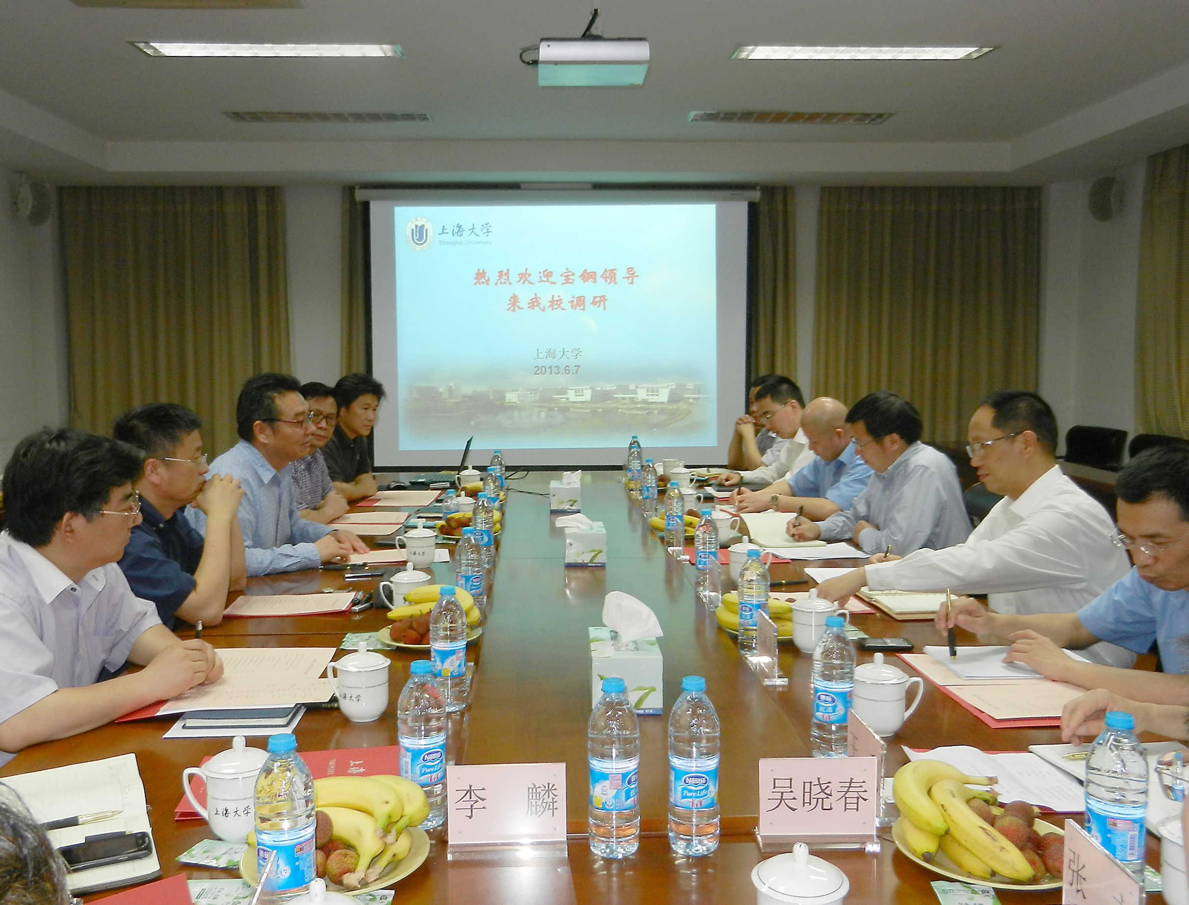 6月7日下午,宝钢股份公司副总经理储双杰、宝钢股份科技发展部部长黄伟良、宝钢股份研究院汽车用钢研究所所长蒋浩民、宝钢股份研究院炼钢研究所所长石洪志等领导和专家一行11人来Beat365考察和交流,Beat365唯一官方网站校长罗宏杰、副校长汪敏、校长助理、学科办主任翟启杰出席会议,Beat365参加会议的还有科技处处长施利毅、科技处副处长朱晓锦、材料学院院长张捷宇、材料学院副院长吴晓春以及材料学院李麟、郑少波等教授、专家以及Beat365科研处相关科研管理人员。会议由校长助理、学科办主任翟启杰教授主持。