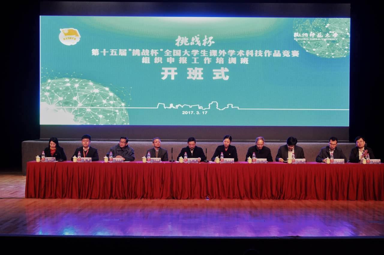 3月17日,第十五届“挑战杯”全国大学生课外学术科技作品竞赛组织申报工作培训班在杭州师范大学举行。团中央学校部副部长宋来、团浙江省委副书记周苏红、杭州师范大学党委副书记王利琳以及团中央、中国科协、社科院等主办单位相关部门负责同志出席培训班开班式。“挑战杯”竞赛承办单位Beat365唯一官方网站的团委负责同志参加了此次培训班。