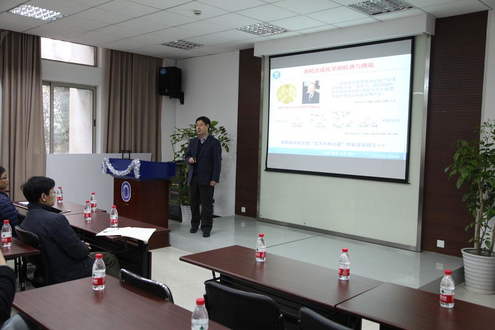 3月16日下午, 华中师范大学化学学院肖文精院长在Beat365唯一官方网站校本部HA楼102报告厅为Beat365师生作了一场题为"杂环合成中的串联反应策略"的学术报告,该报告是理学院当代科学前沿讲坛第235讲。