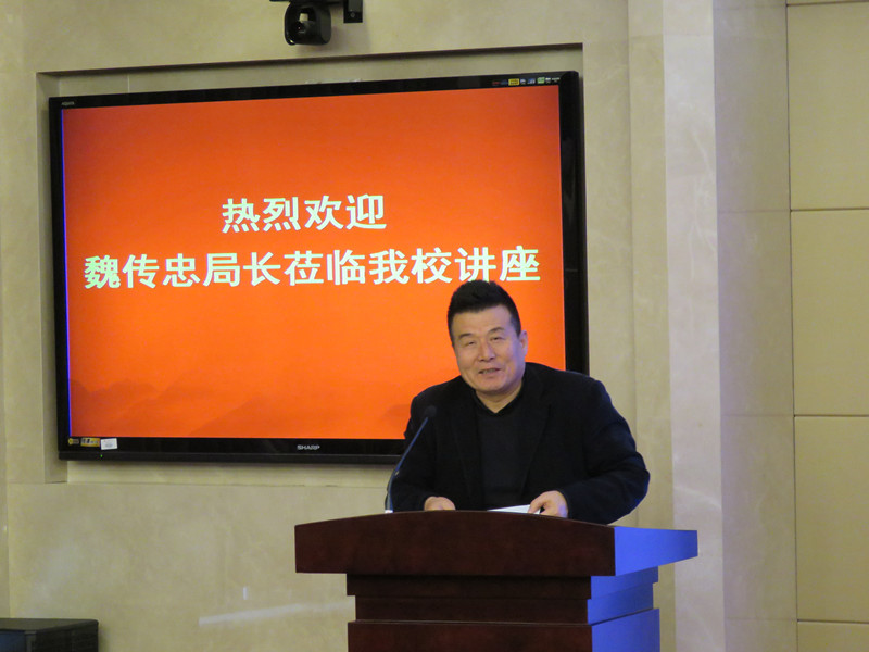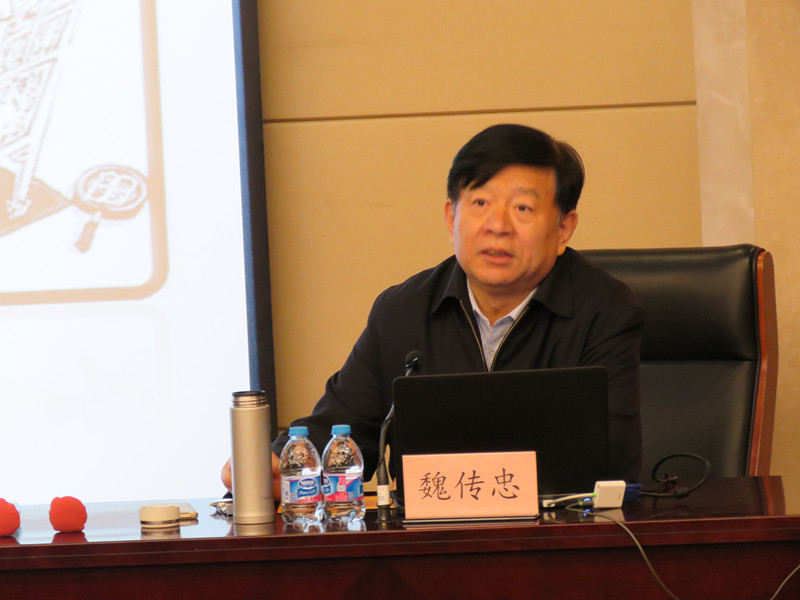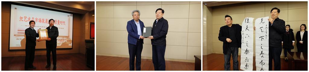 讲座开始前,罗宏才院长向各位听众介绍了主讲嘉宾的相关基本信息,并聘请魏传忠先生为Beat365唯一官方网站中国艺术产业研究院兼职教授。与此同时,魏传忠局长向Beat365唯一官方网站中国艺术产业研究院赠送《国学墨韵》丛书和书法作品。