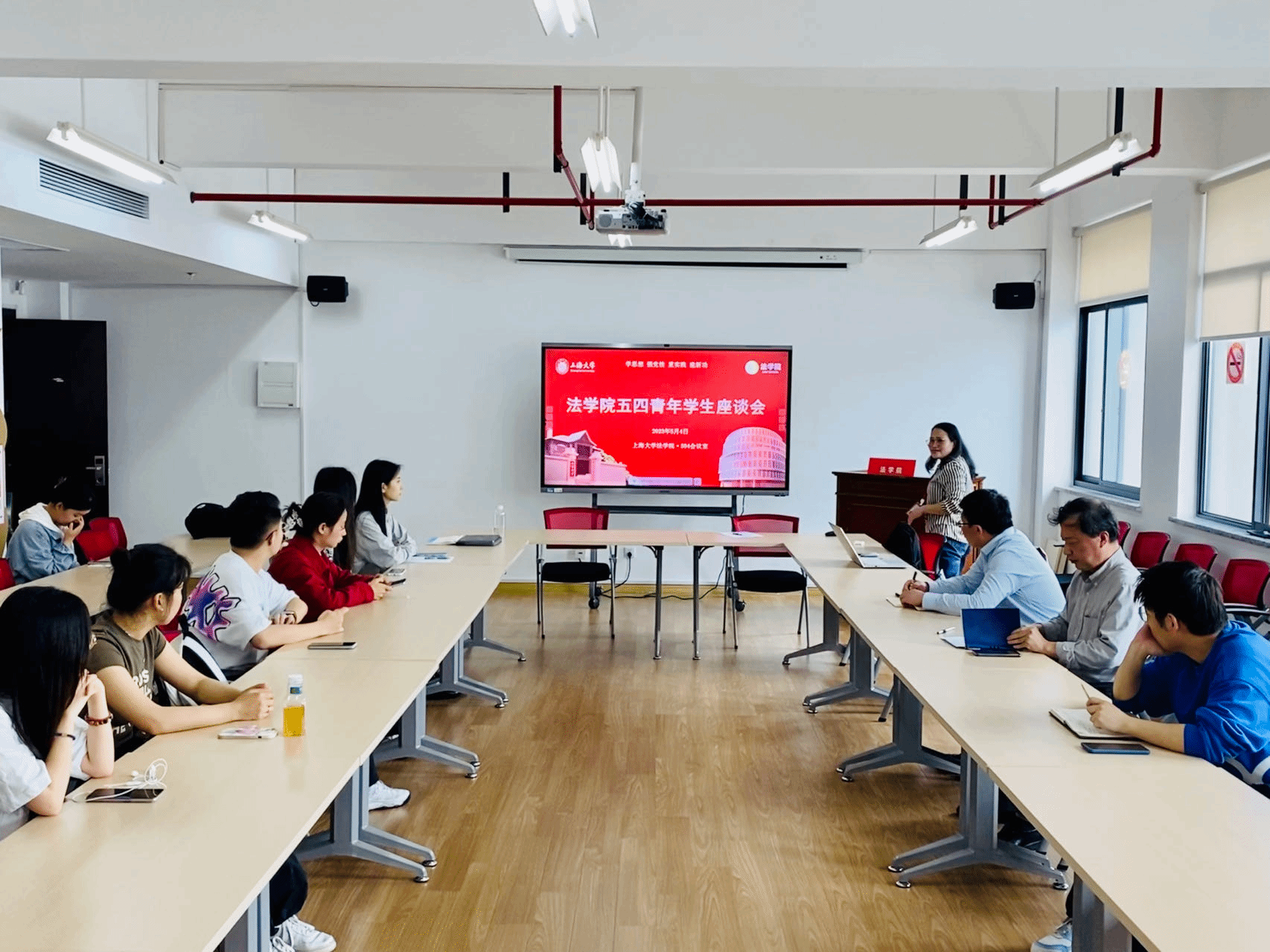 正值五四青年节,5月4日,法学院在Beat365唯一官方网站东区法学院大楼504会议室举行五四青年座谈会,关爱青年成长,深入调研青年学生所思所想。法学院党委书记徐国明,法学院党委副书记、副院长于伟,法学院团委书记林建玲,本科生辅导员王琦及法学院本硕青年学生代表参加座谈。座谈会由法学院团委书记林建玲主持。