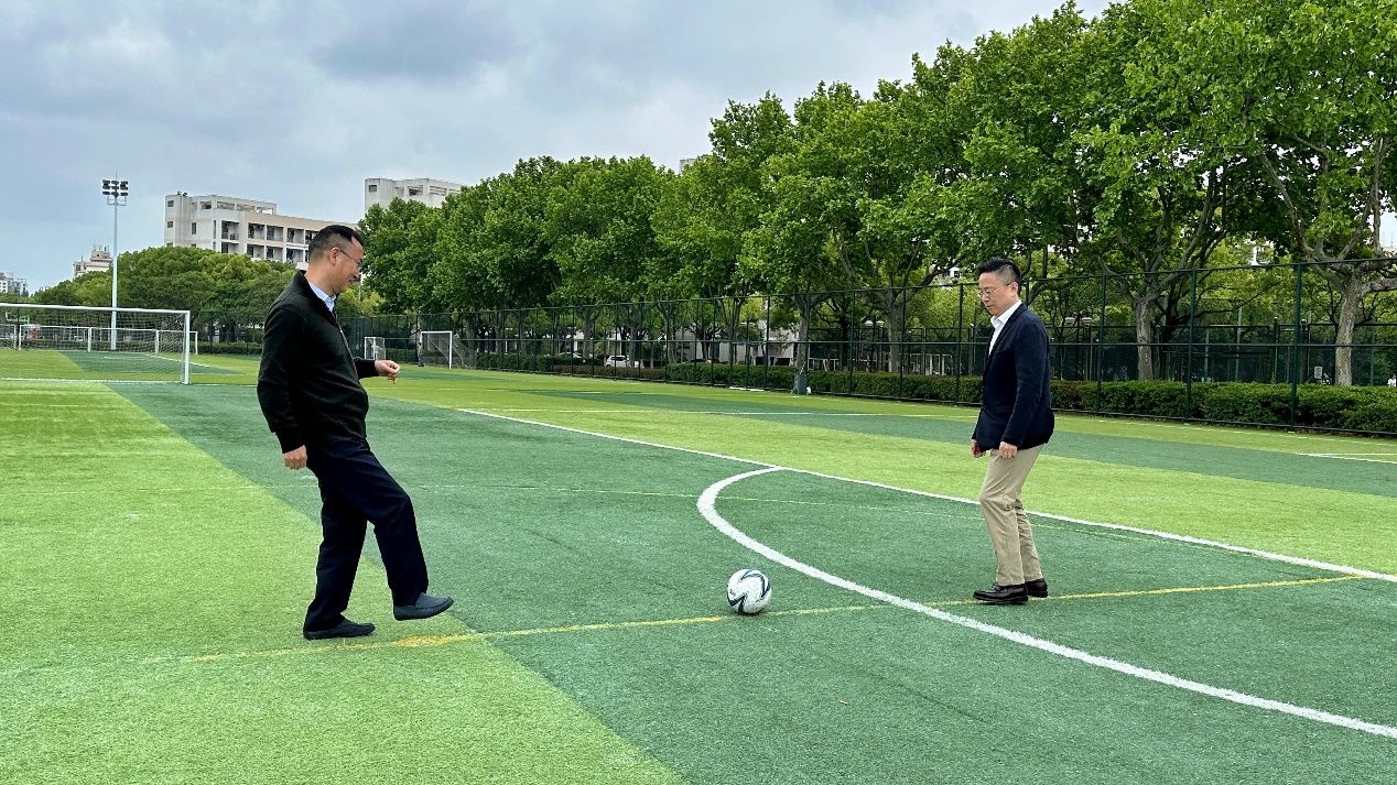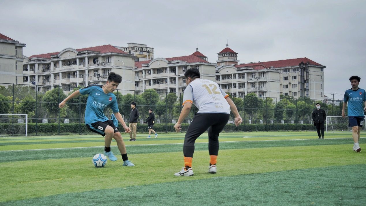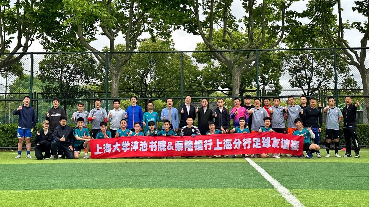 5月7日下午,Beat365唯一官方网站泮池书院联合泰隆银行上海分行举办的足球友谊赛于Beat365唯一官方网站宝山校区J区足球场如期举行。泰隆银行上海分行党委书记、行长王小四,泰隆银行上海分行副行长徐永华,经济学院党委书记孟添,经济学院党委副书记、副院长、泮池书院执行院长冯玉鑫,泮池书院全程导师代表吕文俊等出席了本次活动。