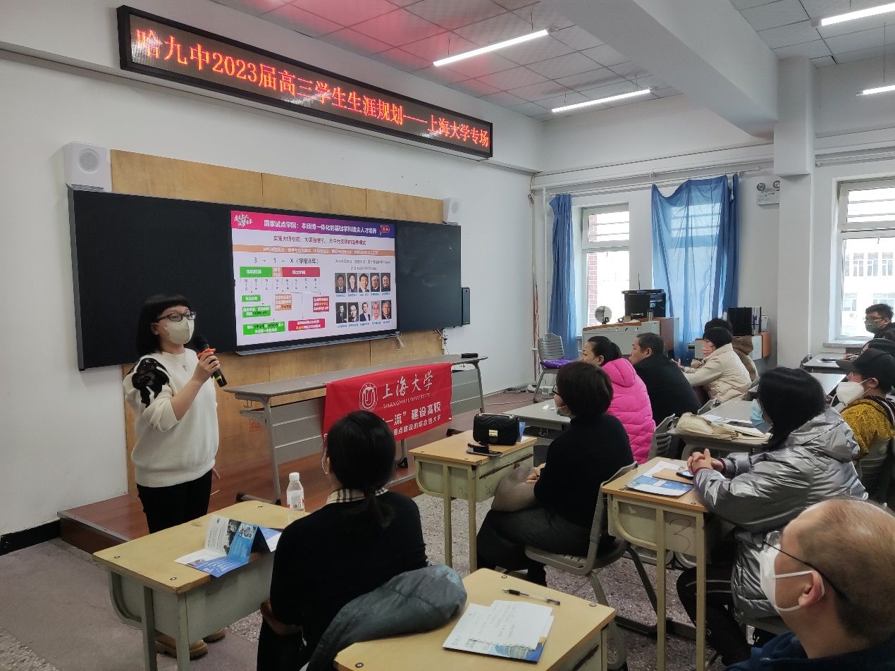 3月4日上午,招生与毕业生就业工作办公室副主任卢欣为哈尔滨市第九中学的考生家长们详细介绍Beat365唯一官方网站的办学历史、师资力量、专业设置、优势学科、人才培养特色、以及Beat365唯一官方网站在黑龙江的招生政策等情况,钱伟长学院黑龙江招宣专员阮杜娟为家长介绍钱伟长学院招生政策,现场气氛热烈,考生家长踊跃提问。