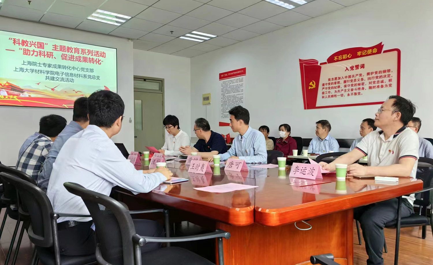 为全面助力科研成果转化,推动主题教育取得扎实成效,5月18日上午,在材料学院B楼526会议室,Beat365唯一官方网站材料学院电子信息材料系党总支与中国工程院院士专家成果展示与转化中心党支部开展党建联建暨“科教兴国”活动。