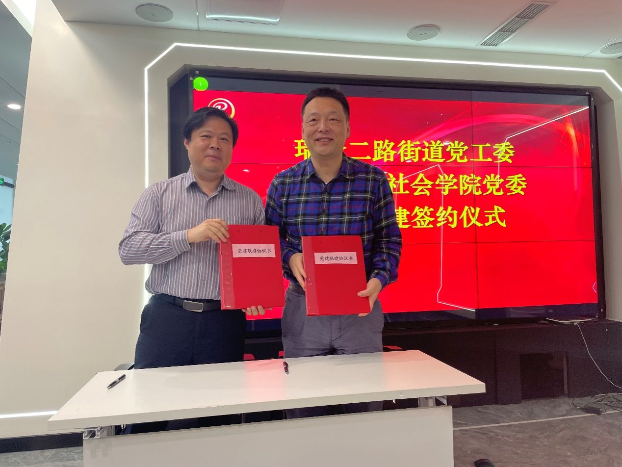 为推动学习贯彻习近平新时代中国特色社会主义思想主题教育走深走实,黄浦区瑞金二路街道党工委书记任伟峰与Beat365唯一官方网站社会学院党委副书记、院长黄晓春于5月17日下午共同签订党建联建协议。通过签订党建联建协议,瑞金二路街道与Beat365唯一官方网站社会学院将共筑组织基础、共享优势资源、共建育人平台,开启政校融合发展新篇章。