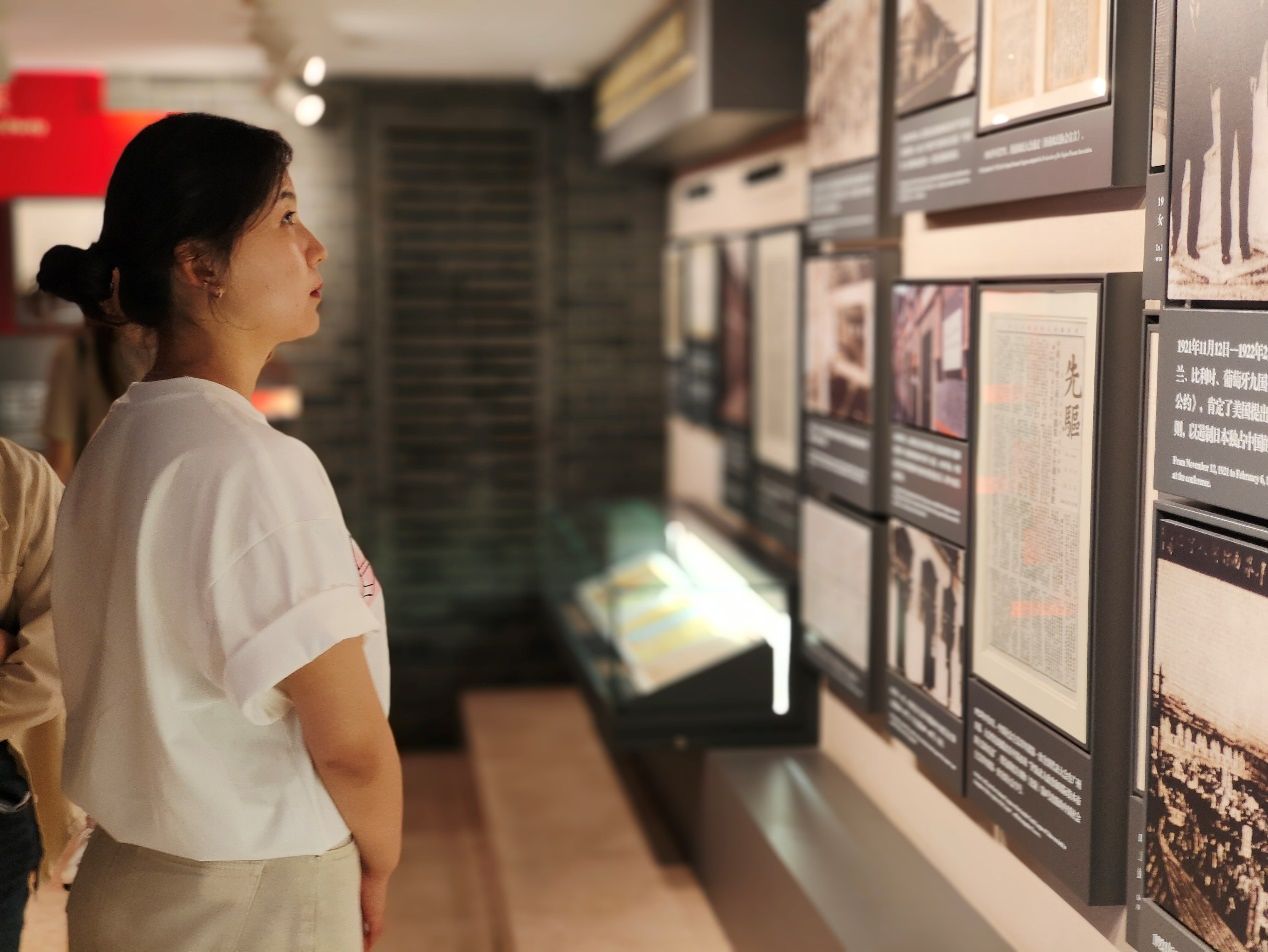 在平民女校旧址展厅,通过女校教师、学生的相关报道和回忆录,师生党员深刻感受到建党初期革命女性为学习新思想、接受马克思列宁主义熏陶,矢志不渝追求真理的艰辛探索历程。