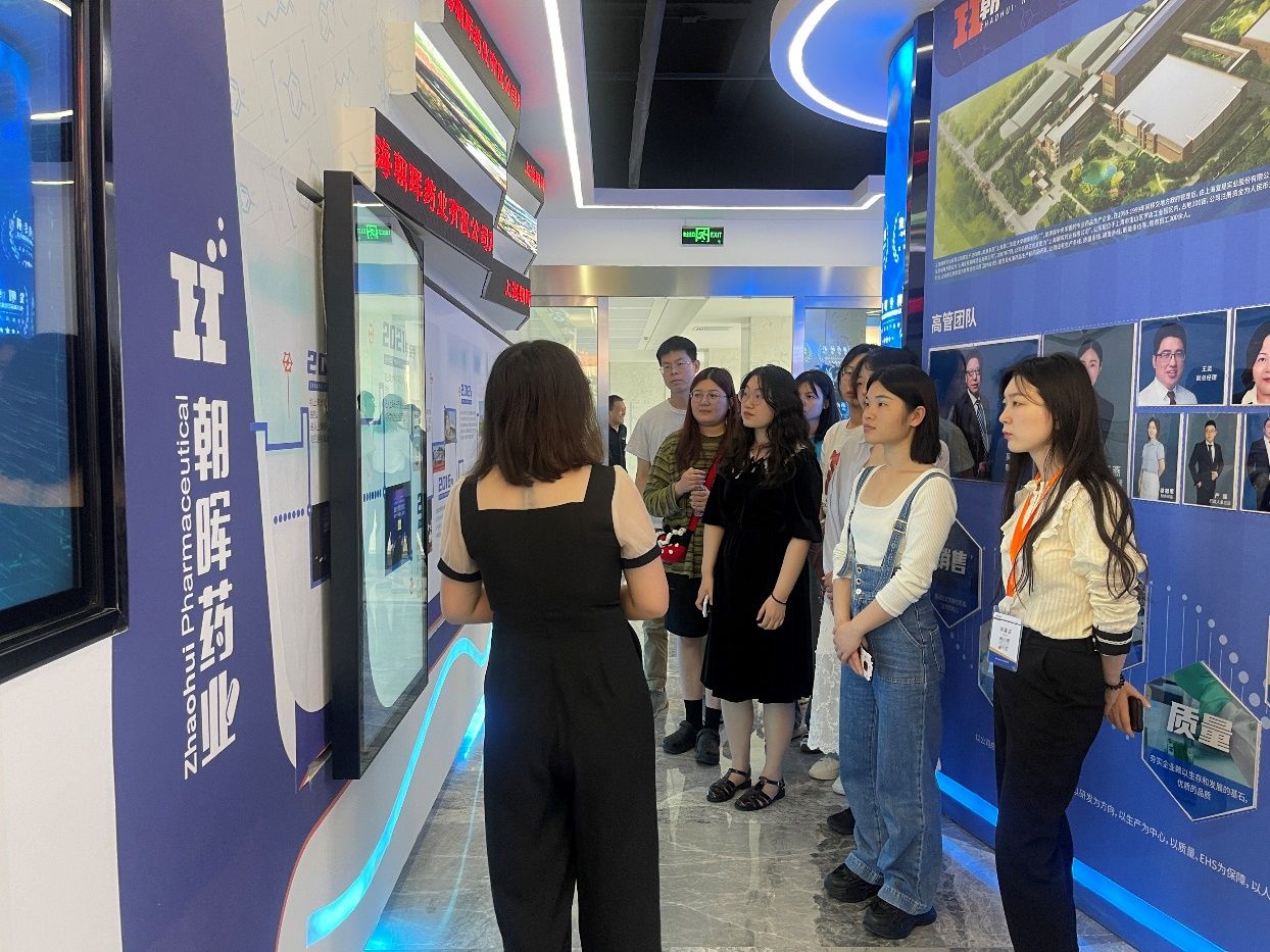 在工作人员的引导下,师生一行首先参观了朝晖药业的展示厅,详细了解了朝晖药业悠久的企业文化以及产品业务,其中明星产品复方酮康唑软膏激发了同学们极大的兴趣,引发了现场热烈的讨论。