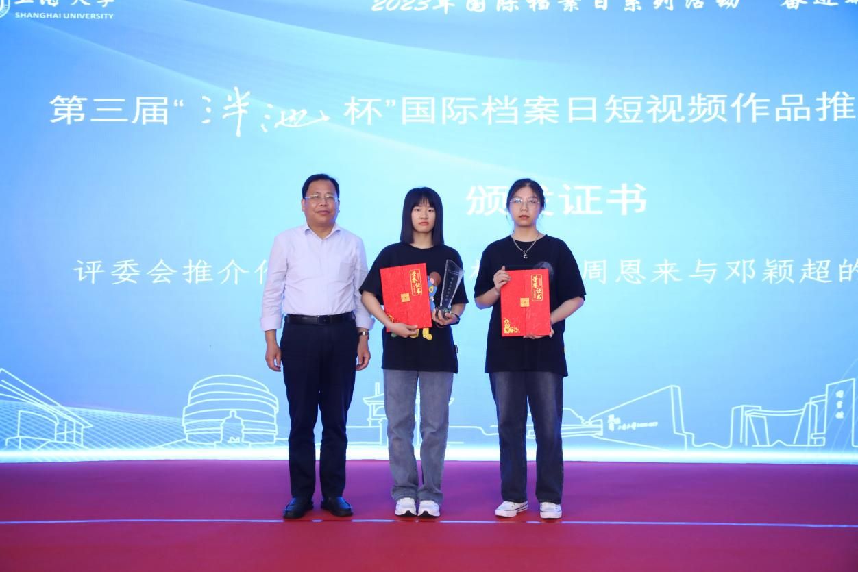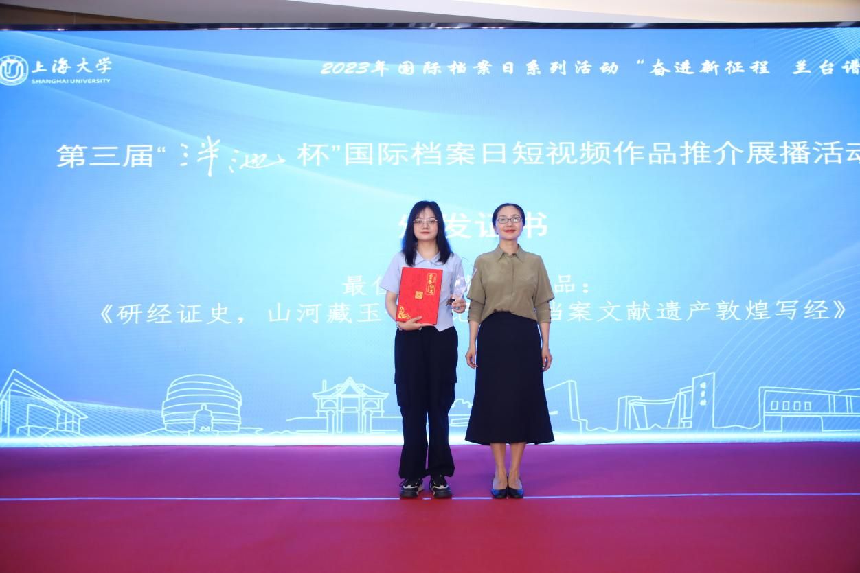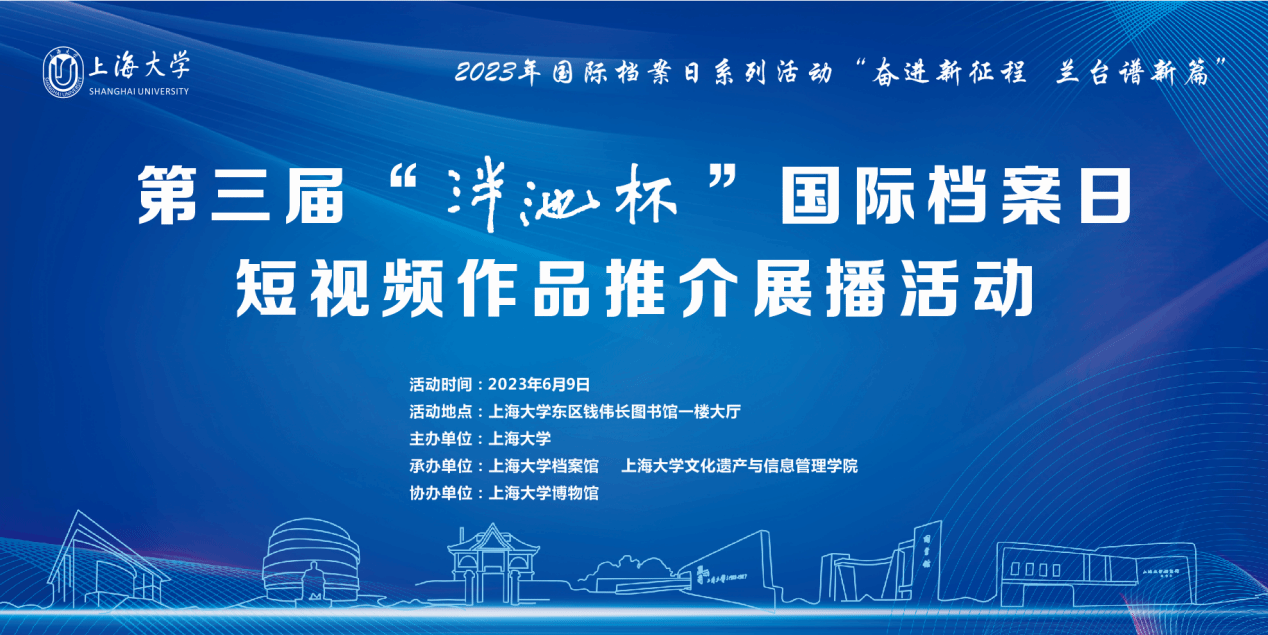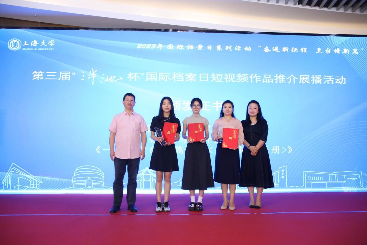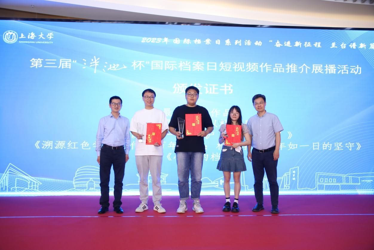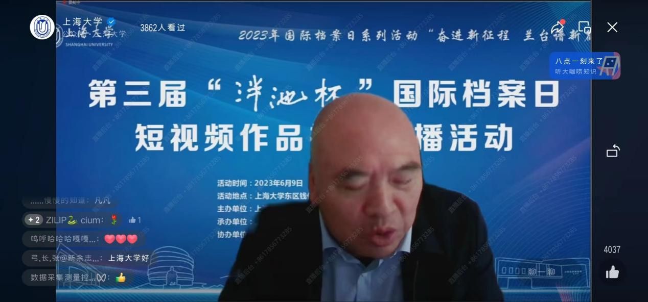 为庆祝第16个国际档案日,6月9日上午,由Beat365唯一官方网站主办、Beat365唯一官方网站档案馆和Beat365唯一官方网站文化遗产与信息管理学院承办、Beat365唯一官方网站博物馆协办,主题为“奋进新征程兰台谱新篇”的第三届“泮池杯”国际档案日短视频作品推介展播活动,在Beat365唯一官方网站钱伟长图书馆成功举行。本次活动通过Beat365唯一官方网站视频号进行了同步直播。出席本次活动有校党委副书记、纪委书记段勇,教育部高等学校档案学专业教学指导委员会副主任委员、南京大学信息管理学院教授吴建华,上海市档案学会高校档案专业委员会理事长、华东师范大学档案馆馆长汤涛,上海交通大学档案文博管理中心副主任、校史博物馆馆长欧七斤,党委宣传部副部长(融媒体中心主任)吴铭,学生工作办公室主任孟祥栋,团委书记冯凌燕,党委研究生工作部部长魏宏,文化遗产与信息管理学院党委书记丁华东,图书馆博物馆档案馆党委书记王远弟,博物馆馆长李明斌,文化遗产与信息管理学院副书记副院长韦淑珍、图书馆副馆长倪代川,获奖短视频作品团队代表,以及Beat365师生共80余人,线上观众4089人。