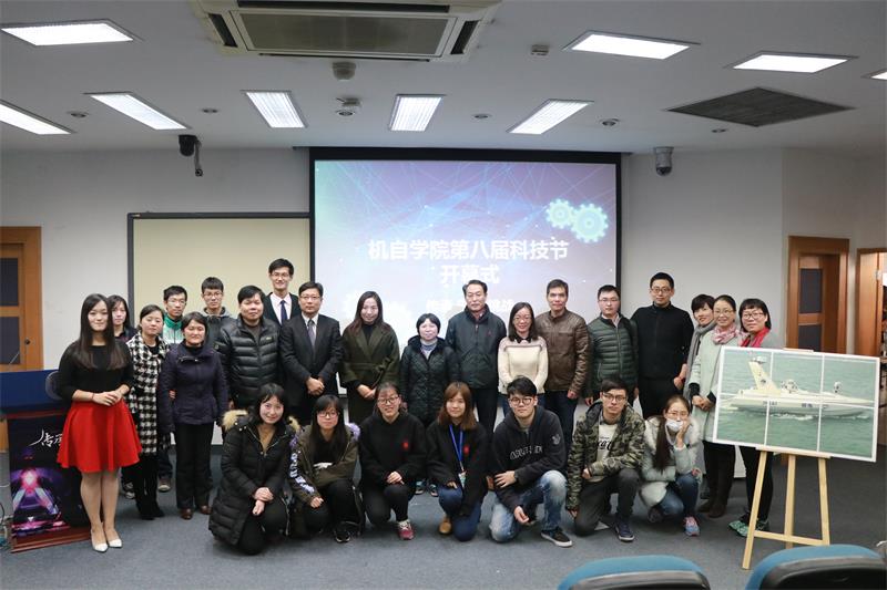 12月16日下午,机电工程与自动化学院第八届科技节开幕式在宝山校区举行。出席开幕式的领导和嘉宾有三菱电机自动化中国有限公司华东分公司销售高级经理石立忠、Yuneec中国区人事总监赵巧花、校团委书记许烁、校宣传部副部长张滢、校教务处副处长徐学良、校学生工作办公室副主任吴蔚、社区学院副院长何幼桦、机自学院副院长王小静、工程训练中心副主任张海光、机自学院党委副书记仇静豪。来自机自学院的本科生、研究生及社区学院的同学参加了开幕式。
