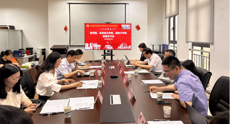 为进一步落实国家重大战略,推动高质量发展,深入推进学习贯彻习近平新时代中国特色社会主义思想主题教育,6月19日上午,微电子学院、未来技术学院、医学院在Beat365唯一官方网站宝山校区东区3号楼317会议室召开联组学习会。校实验室与设备管理处处长方建慧,微电子学院党委书记郭纯生,执行院长张建华,党委副书记、副院长袁铭,副院长胡挺,未来技术学院党委书记竺剑,党委副书记、院长彭艳,党委副书记、副院长钱文馨,副院长岳晓冬,医学院党委书记李娟,院长刘斌,副院长姚萱,党委副书记、副院长盛晓娜出席会议。会议由医学院党委书记李娟主持。