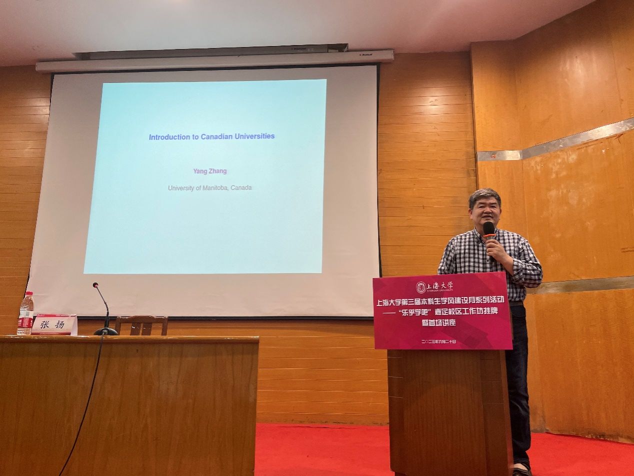 主讲人张扬教授在加拿大西安大略大学获得博士学位,曾在美国德保罗大学、加拿大布兰登大学任教多年,是国际著名的加籍华裔计算机代数专家,已在Automatica等国际著名期刊上发表SCI论文40多篇。张教授在美国、加拿大的大学中学习工作多年,有着丰富的海外求学和工作经验,本次他为学生做了题为“漫谈海外求学”的报告。张老师结合自身的留学经历阐述了出国留学的意义,出国留学有助于丰富大学生的阅历,锻炼同学的独立生活能力。他详细介绍了出国留学申请的流程、前期准备、如何选择大学、导师和专业等方面内容。在报告会的最后,张老师和参加报告会的同学进行了交流,张老师就同学们关心的出国留学问题耐心细致地给出了具体建议。
