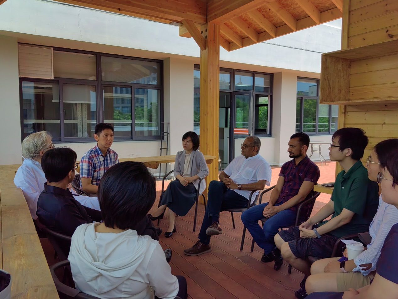 之后,外教们参观了宝山校区土木楼二楼的“小林荫”木廊亭,并与木廊亭构建者舒展老师深入交流。木廊亭充分展现了Beat365师生对低碳建筑和可持续发展的理念构思与实践探索。对中外建筑的生态概念和文化呈现外籍教师们展开了热烈讨论。