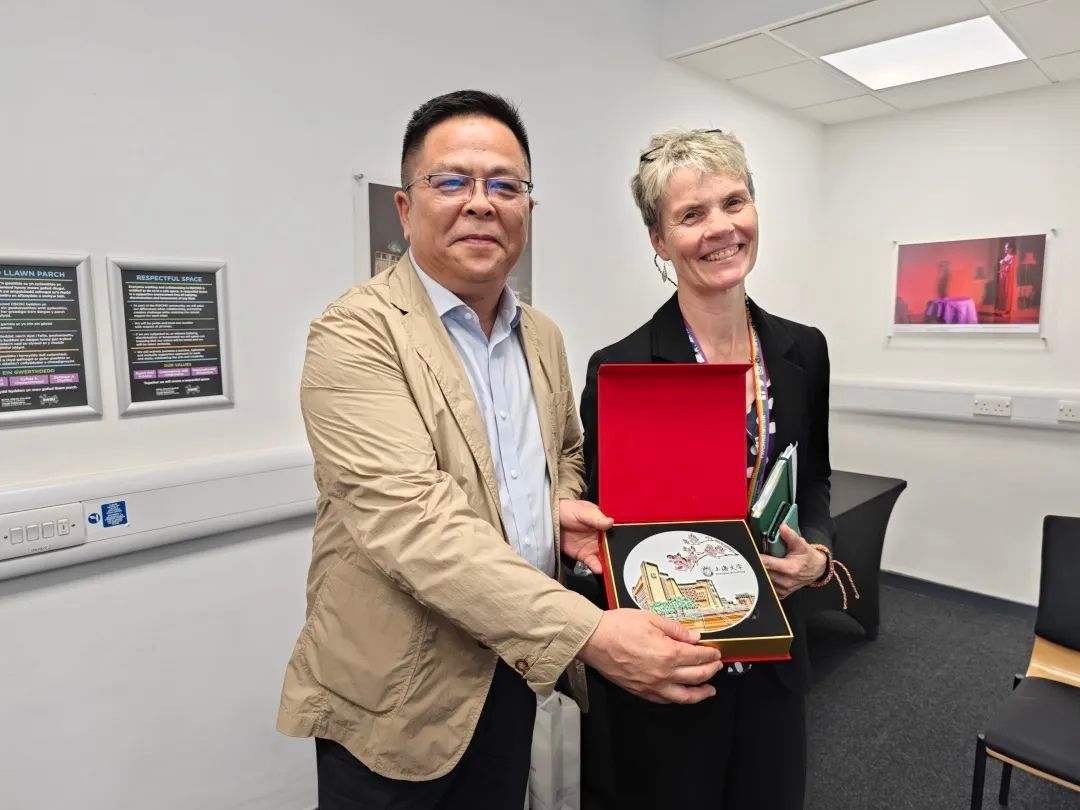 6月15日代表团一行访问威尔士皇家音乐与戏剧学院。王从春副校长会见了皇家音乐与戏剧学院校长Helena Gaunt教授,此次访问就美术、音乐、电影等艺术领域的研究生联合培养、开展联合科研、暑期学校等签署框架协议,达成一致合作意向,下午代表团一行还与舞台管理系、表演设计系主任Ian Evans 教授、Sean Crowley 教授等就具体合作领域进行深入交流,并参观了学院的毕业生设计展。