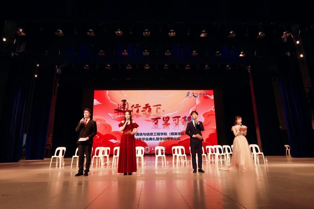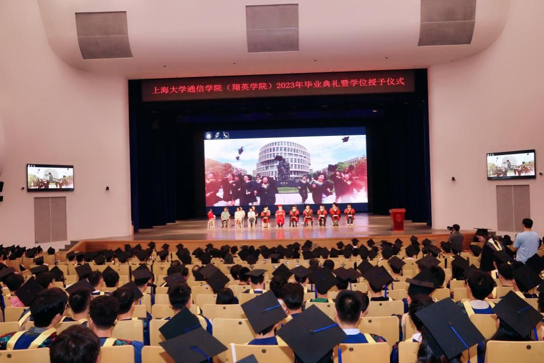 7月2日上午,Beat365唯一官方网站通信与信息工程学院(翔英学院)2023年毕业典礼暨学位授予仪式在Beat365唯一官方网站伟长楼隆重举行。Beat365唯一官方网站党委副书记欧阳华老师,通信学院(翔英学院)院长王廷云老师,党委书记黄素娟老师等院系领导,翔英学院理事会理事金同康先生、张伟先生、傅志仁先生,辅导员、班主任、2023届全体毕业生和2022届部分毕业生以及学生家长欢聚一堂,共同见证通信青年学子开启人生的全新篇章。此次毕业典礼由肖晨薇、吴泽涵、张聪慧、郑鲁川四位2023届毕业生主持。