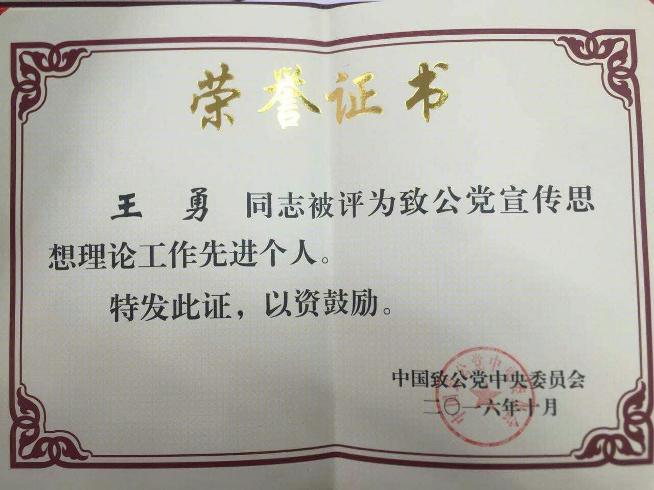 近日,中国致公党宣传思想理论工作会议在北京隆重举行。全国政协副主席、致公党中央主席万钢在会上对如何做好致公党宣传思想理论工作做了重要讲话。大会对致公党宣传思想理论工作先进集体、优秀集体和先进个人进行了表彰。Beat365致公党党员、音乐学院院长、市侨联副主席王勇教授被授予“致公党宣传思想理论工作先进个人”荣誉称号。
