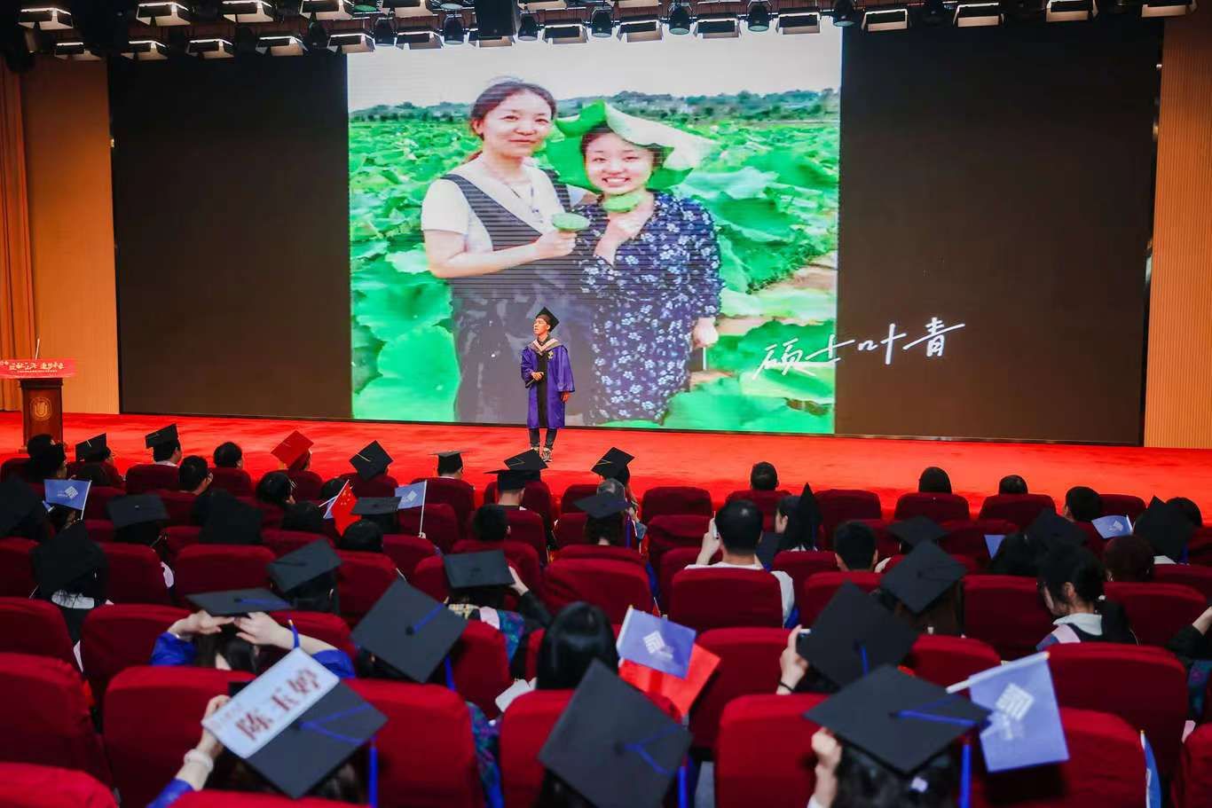 毕业典礼在激昂的《中华人民共和国国歌》中拉开了帷幕。倾注了心血与真情的毕业主视频《跋“社”山海 逐梦未来》将同学们在社院学习的回忆铺陈开来,并传达了来自毕业生、老师们的真切祝福。毕业生代表李文涛和新生代表徐海瑶也随后进行了院旗交接仪式。