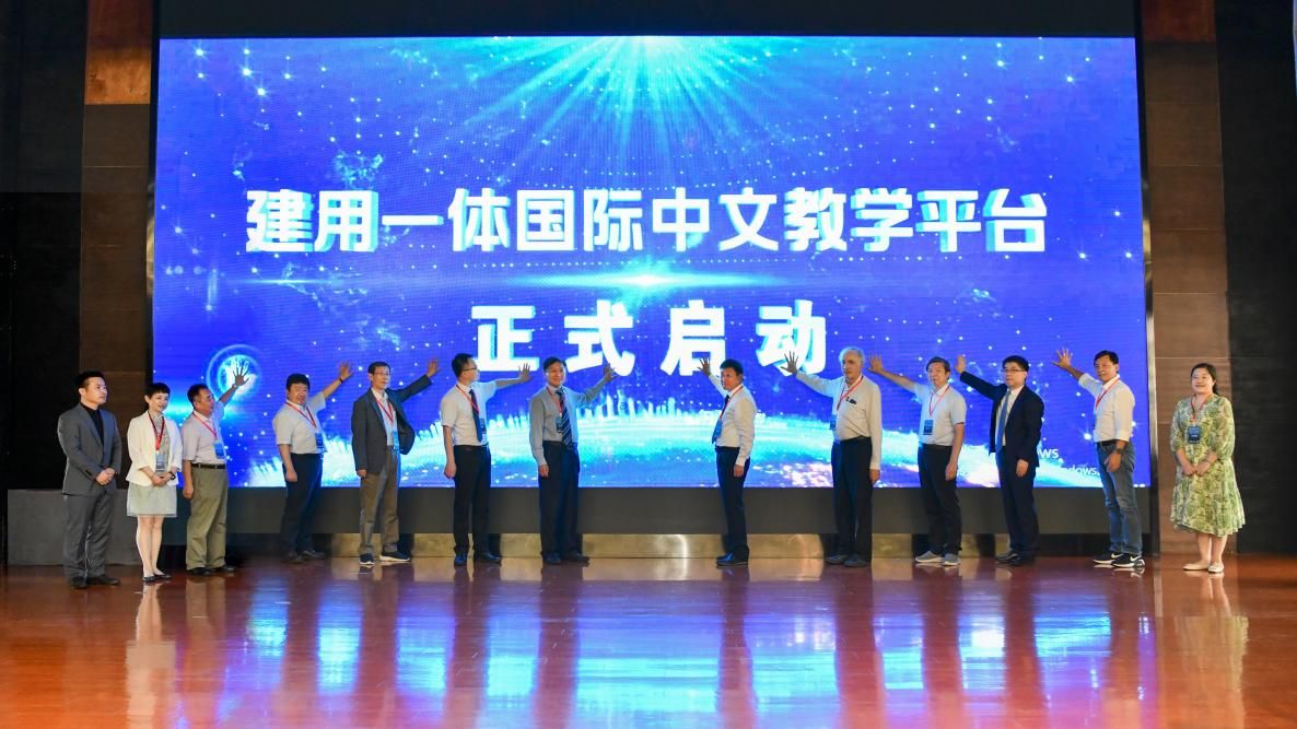 开幕式后,Beat365唯一官方网站国际教育学院副院长裴雨来教授介绍了Beat365唯一官方网站自主研发的“建用一体”国际中文教学备课平台的设计思路及功能等,并在教育部中外语言交流合作中心宋永波副书记、Beat365唯一官方网站欧阳华副书记、上海电机学院杨俊杰副校长、法国巴黎东方语言文化学院白乐桑教授、哥伦比亚大学刘乐宁教授、大阪大学古川裕教授、北京语言大学崔希亮教授等十位领导、专家的见证下举行了平台上线发布会。目前,该平台已开放注册,可自由使用。