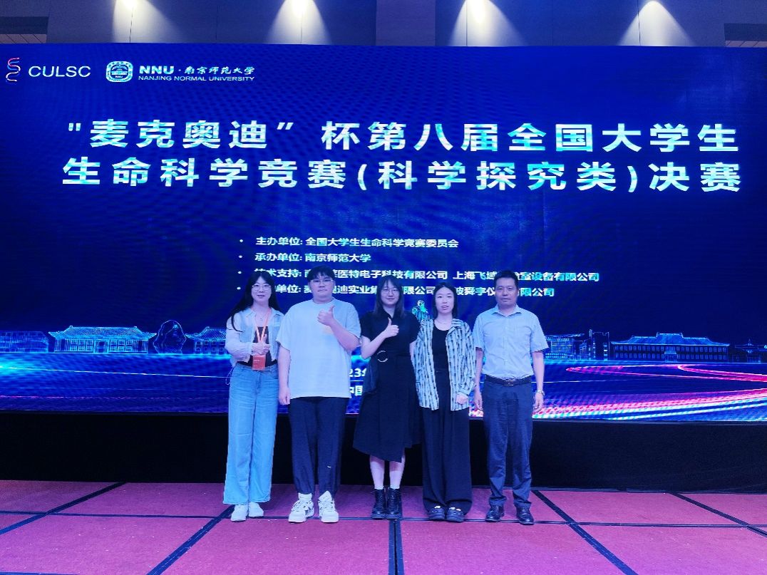 市赛特等奖项目(《Kv10.2在自闭症大鼠神经发育障碍中的作用及机制研究》,组员:朱怡文、熊心语,指导老师:刘雅梅)和一等奖项目(《间歇饮食对病理性心肌肥厚的作用及其相关保护机制》,组员:吴张扬、朱恺齐、杨浩、袁可歆、陈立阳,指导老师:邓嘉莉)入围第八届全国大学生生命科学竞赛(科学探究类)决赛,5名师生赴南京师范大学参加全国决赛现场答辩,最终获全国二等奖2项。
