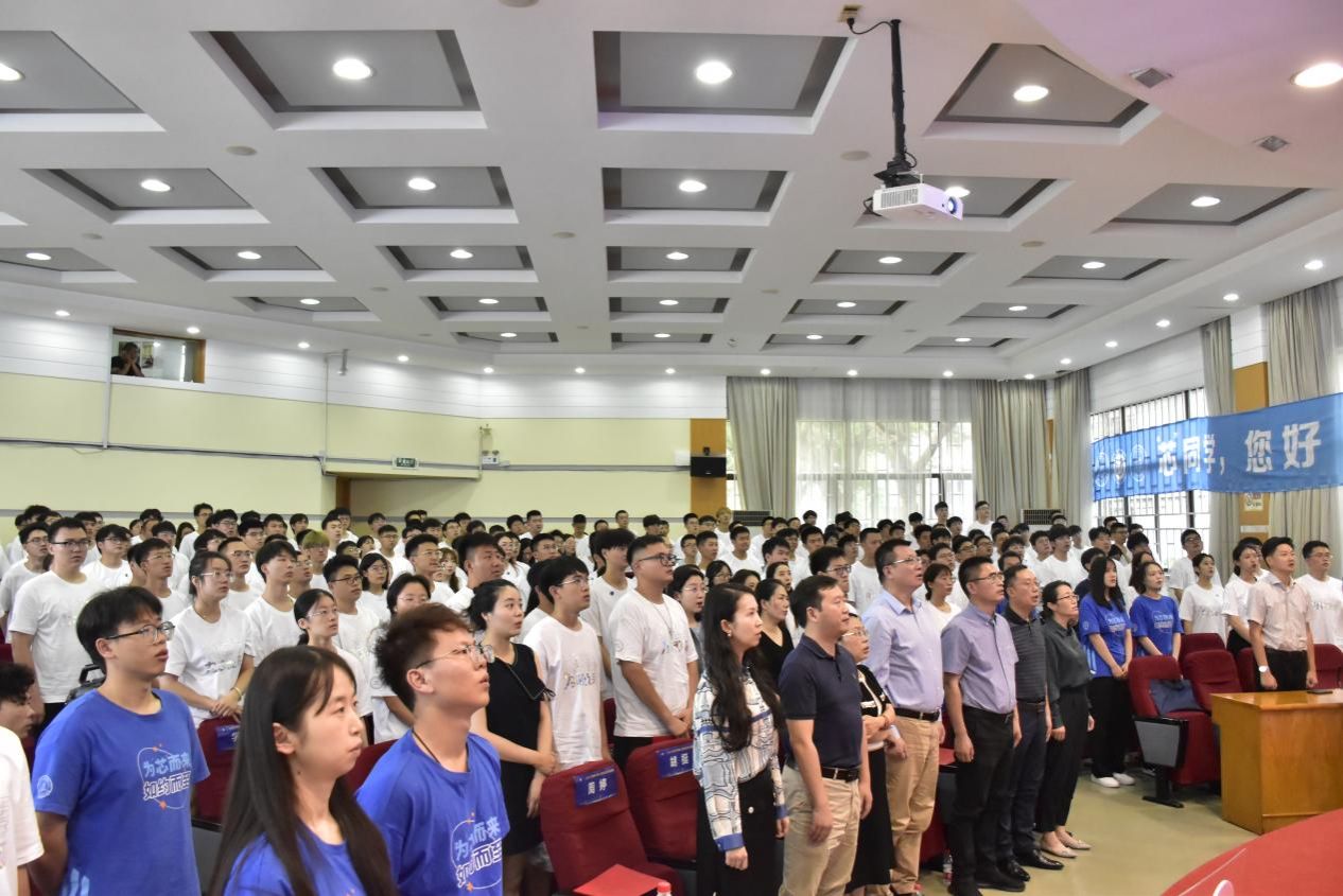全体师生起立,奏唱国歌,开学典礼正式开始。